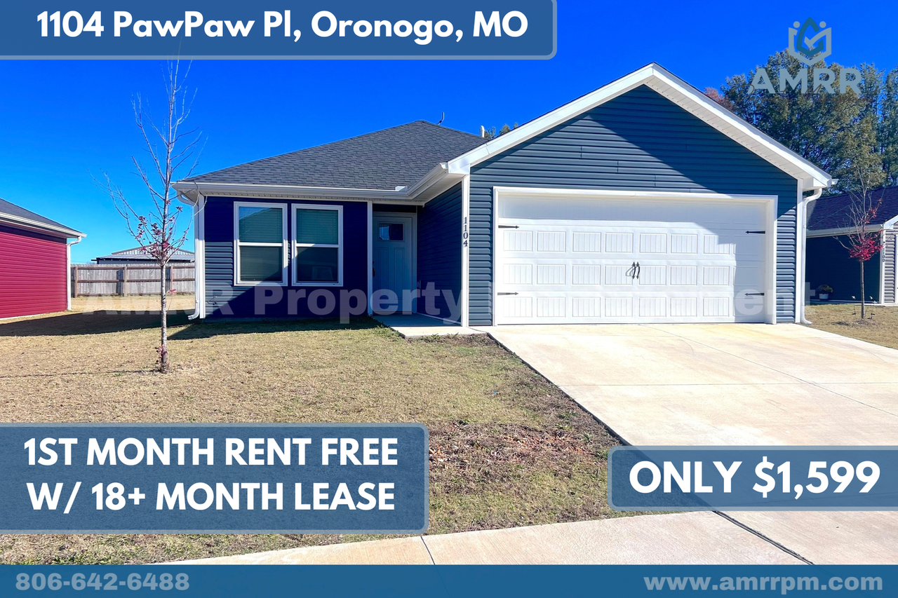 1 month free for 18 month lease or 1/2 month free for 12 month lease Welcome to your new home with AMRR Property Management, featuring 1,200 square feet of living space, 3 bedrooms, 2 baths, and a 2 car garage. This gorgeous home is located in Oronogo, Missouri, and it has everything you need a rental. The kitchen features a stove, microwave, dishwasher, custom cabinets, and vinyl flooring that extends throughout the home, which means NO carpet whatsoever. The backyard includes a relaxing covered patio and a spacious grass backyard. Length of lease can be between 12 and 24 months. Utilities are ALWAYS the responsibility of the tenant, unless otherwise advertised. Tenants are responsible for all lawn care and maintenance during tenancy, unless otherwise advertised. Security deposits are required for most properties, but we offer various deposit amounts and payment options, which are determined during the application process. Application fees are generally $45 but few can waive the application fee if an application is filled out within 24 hours after you complete a scheduled showing with one of our leasing agents. Normally, only 2 pets are allowed per property and we charge a one-time pet fee of $250 per pet, with no breed restrictions or weight limits, unless otherwise advertised. No smoking of any kind is allowed inside the property or garage.