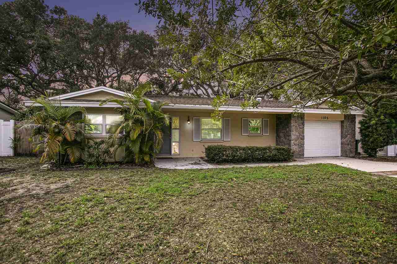 Lovely and spacious 3 bedroom, 2 bath, 1 car-garage home within a mile of Downtown Dunedin restaurants and bars. Excellent location! Walk or ride your bike downtown or to the marina. Half a block's walk for groceries to a shopping plaza! Spacious open floor plan includes a breakfast nook and a bar island along the kitchen which looks out onto the living area. Low maintenance laminate flooring throughout the home, including a large charming, enclosed Florida room (with updated windows) looking out over the backyard. The master bedroom includes an adjoining bath, tiled shower, and a generous walk-in closet. The rear bedroom opens onto the back yard. The backyard has new sod and a mature tree canopy overhead with tropical foliage make this shady and fenced back yard great for entertaining, with an open patio sitting area. Dishwasher, refrigerator, washer and dryer included. Best of Dunedin living only 5.6 miles to Honeymoon Island State Park, and 7.8 miles to Clearwater Beach, easy access to US 19, and just across the bay to Tampa International Airport and Tampa Bay. NOTE: Non-refundable pet security deposit due at signing in addition to first month plus security deposit. Water and utilities are tenant's responsibility.