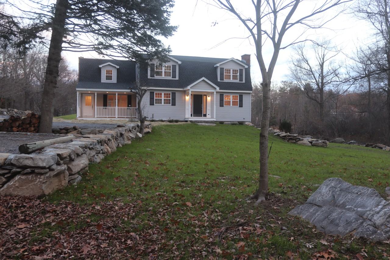 Located on one of Massachusetts most scenic roads, among apple orchards and horse farms, this 3-4 bedroom, 3 bath home has been completely remodeled for modern living. The new kitchen, with high-end cabinets, countertops and appliances, opens to a casual dining area and coffee bar. A wall of windows overlooks an amazing back yard with over an acre of open lawn/field with spectacular stone walls and outdoor entertaining space. Upstairs, the front-to-back master suite has a large bath with rain shower, walk-in closet, and fully equipped laundry. Two additional bedrooms share a full bath. On the main floor, a great room with fireplace, studio or fourth bedroom, and office share a third full bath. This property is a hidden gem in a quiet farming community with friendly people and great schools. It sits on a former apple orchard, now a well-established neighborhood with houses priced in the high $700s to $1.2M. Two large shopping malls (one brand new) and entrances to Routes 495 and 290 are only a few miles down the road. Even the MBTA commuter rail is within a 10 minute drive. Be the first to enjoy this like-new property. You will find economical oil-fired heat and central A/C, private water and sewer (no chlorine or water charges!), and landscaping provided by the owner. Private parking for four cars plus guests.