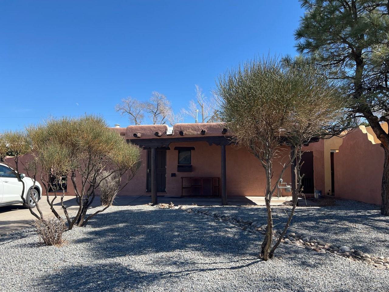 Nick Garcia Adobe across from North UNM Law School. Absolutely stunning, southwest design! Open Living with KIVA fireplace, Nichos, Bancos, Vigas, Latillas, T&G ceilings, skylights, brick floors, dining, country kitchen, three spacious bedrooms, two baths, washer/dryer hook-ups. Rear yard with even the Portal has Vigas. NO Smoking Please. Well behaved licensed pet negotiable. Tenant pays utilities and renters insurance. Elementary School: MONTE VISTA Middle School: JEFFERSON High School: ALBUQUERQUE Bike and Pathways, parks and restaurants, Whole Foods and shopping of every kind. For showing and rental application www MaddoxMgmt com