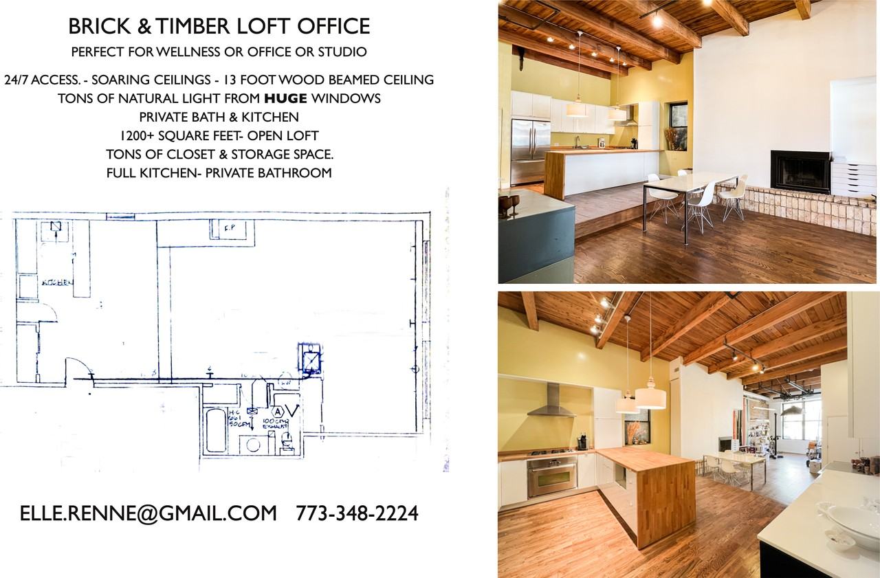 24/7 access. Building features soaring ceilings with natural light, exposed brick & operable windows. Walking distance to public transportation, the Clybourn Metra, the brown, restaurants, retailers. Free neighborhood street parking. Private Bath & Kitchen – Available March 1st 1200+ Square Feet- Open Loft W/ One Private Office 13 Foot High Wood Beamed Ceiling. Tons Of Closet & Storage Space. Full Kitchen- Private Bathroom Tons Of Light From A Huge Windows Laundry In The Building 2Nd (Top) Floor Of Small-Quiet Professional Building Near Armitage & Sheffield – 3 Blocks To Brownline Shops And Restaurants Right Outside The Door Lincoln Park/Depaul close to brownline, buses, shops and restaurants