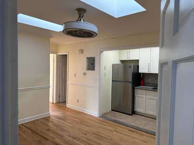 Cozy two bedroom, one bathroom apartment in a quiet neighborhood. Hardwood Floor, Granite countertop, Skylight, ceiling Fan, and stainless steel appliances. Close to transportation, supermarkets and malls