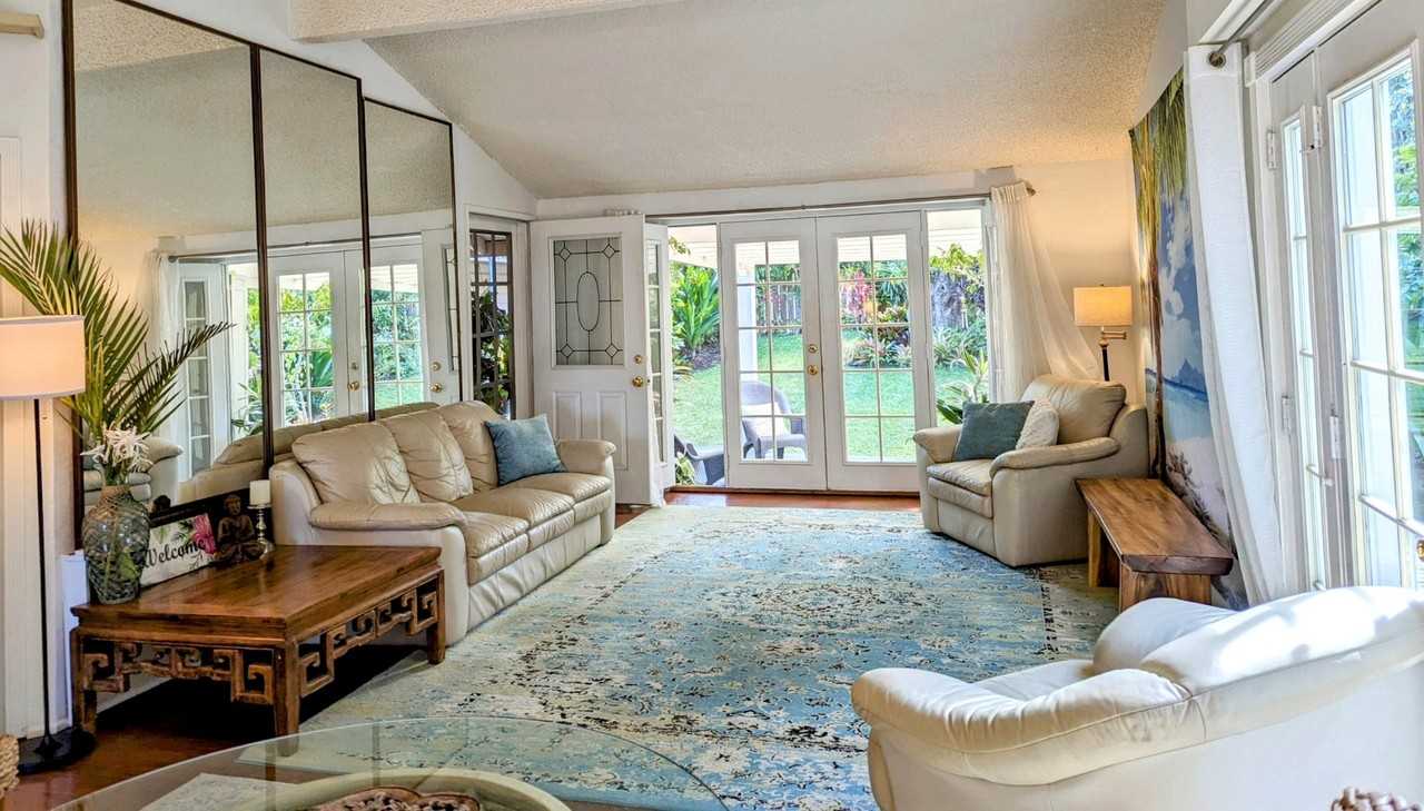 Property Id: 1454415 Beautifully remodeled 3BR 2BA home in Makawao, Maui, HI • Remodeling in April/May 2026: We'll be finished and available to show in 2 weeks • Available June 1st, 2026 • Completely repainted interior • Brand new flooring • Newly remodeled kitchen & bathrooms • Sparkling clean • Furnished w/many amenities •1534 sq. ft includes: 1104 ft interior space 430 ft covered furnished decks • Gated & landscaped for privacy • Fast WiFi • 55" Smart TV w/streaming services available • Waterfall pond & BBQ • Safe HOA neighborhood Sorry not HUD approved Seeking tenants who keep home extremely clean One small pet negotiable with pet deposit • Listor is owner since 2002. Please private message me for more details, thank you!