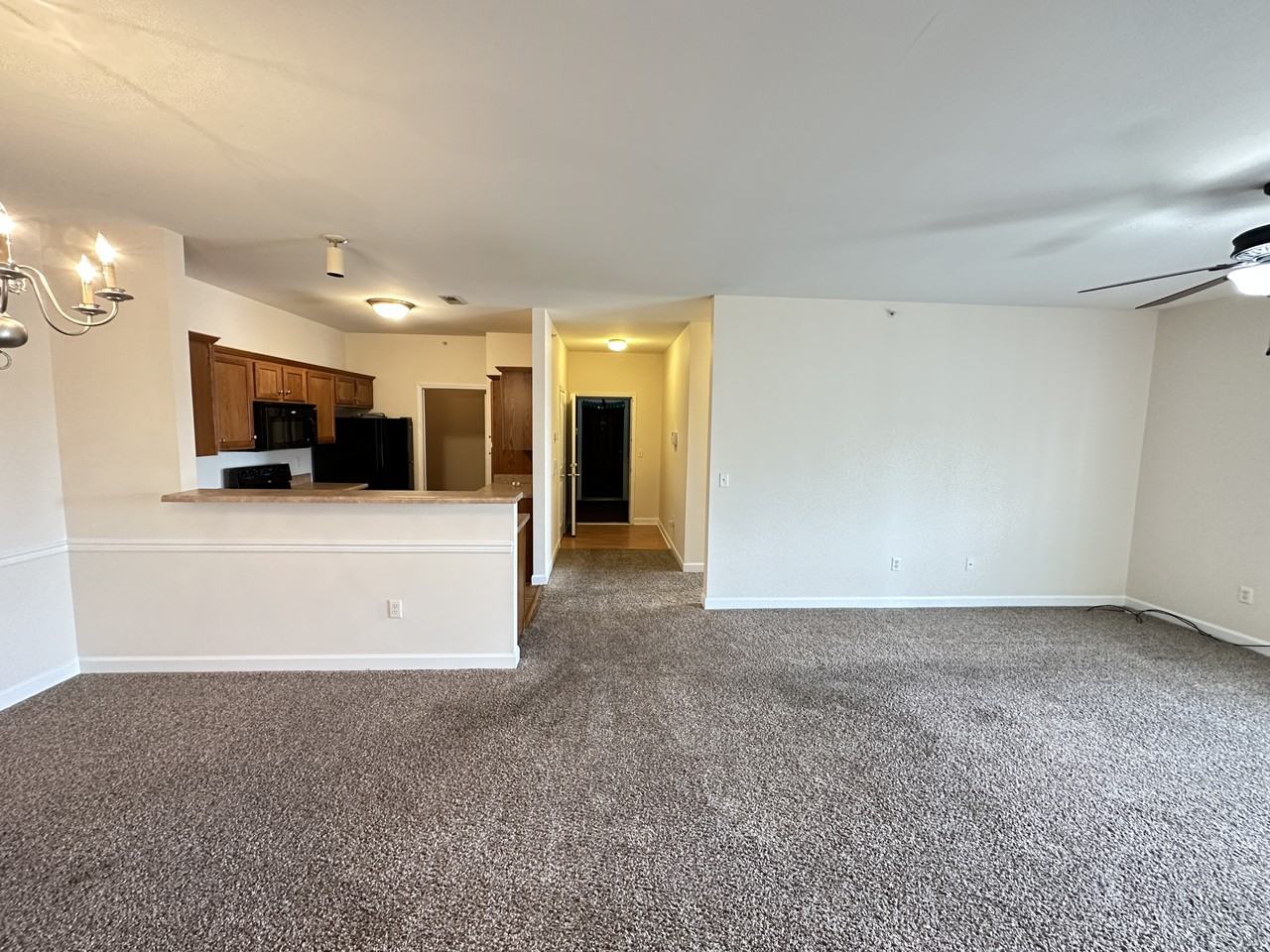 Don't miss out on this fantastic 2 bed, 2 bath condo with an open floorplan. The spacious living room opens up into the dining area, accented with chair rail molding. Please note this is a 2nd floor condo with stairs, but no elevator. The kitchen comes equipped with a full appliance package, including microwave, dishwasher, refrigerator and stove. It also features wood cabinetry and LVP flooring. Enjoy a quick snack at the breakfast bar! Both bedrooms have ample closet space and are conveniently located next to a full bath. The great outdoors is at your fingertips on your covered backyard deck, just off the living area! Take advantage of the community pool, clubhouse and fitness center! Please pardon our dust while we make your future home ready! We would love to tell you more about this home. Call us at 877-751-1677 or schedule a self showing tour and apply at nc purepm co and for reduced move in costs, talk to us about our security deposit replacement program. Sorry, no pets please. Security deposit will be the minimum of one, but not more than two months rent. Each lease will be enrolled in our Resident Benefit Package for $39.00 per month. This package can include renter's insurance.