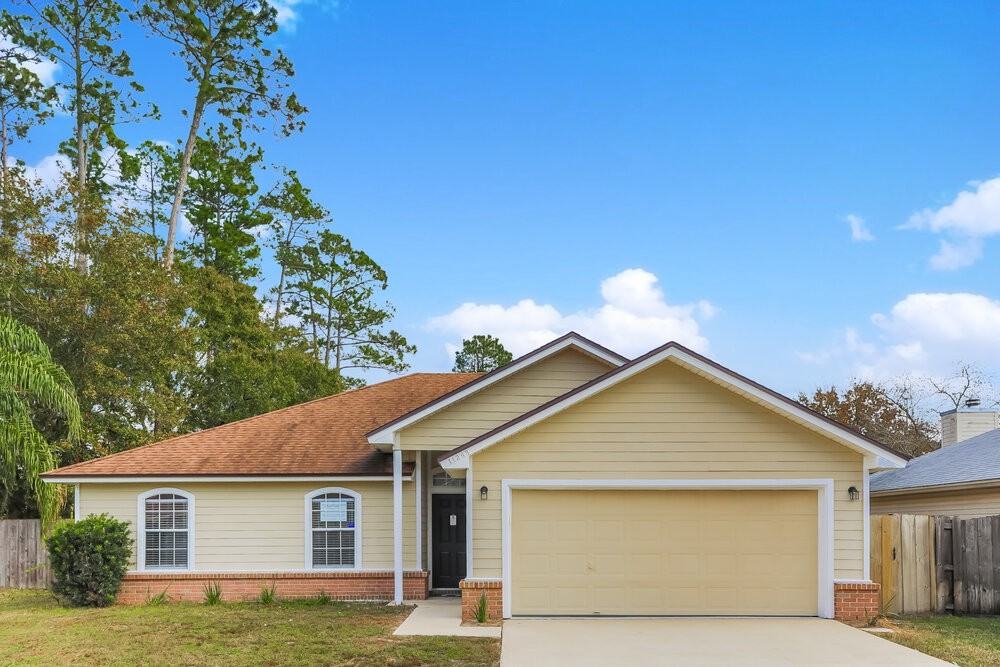 Please note, our homes are available on a first-come, first-serve basis and are not reserved until the lease is signed by all applicants and security deposits are collected. This home features Progress Smart Home - Progress Residential's smart home app, which allows you to control the home securely from any of your devices. Learn more at rentprogress com smarthome Want to tour on your own? Click the “Self Tour” button on this home’s RentProgress. com listing or call (904) 900-2642 to register for a self-guided showing at a time that works best for you. Along with its charming yellow exterior, this Jacksonville, FL rental home offers a renovated interior with three bedrooms and two bathrooms. Enjoy an attached garage and a fenced-in yard that your pets will love. A light-filled living room with a corner fireplace and tile flooring welcomes you inside. Sliding glass doors provide convenient access to the concrete back patio. Granite countertops, stainless-steel appliances, and a tile backsplash highlight the kitchen, which features a lovely bay window and a chandelier in the adjacent dining area. In addition to a lighted ceiling fan and a walk-in closet, the primary suite includes a luxurious en suite bathroom with two vanity sinks, a garden tub, and a glass-walled shower. Contact us today to arrange your private walk-through!