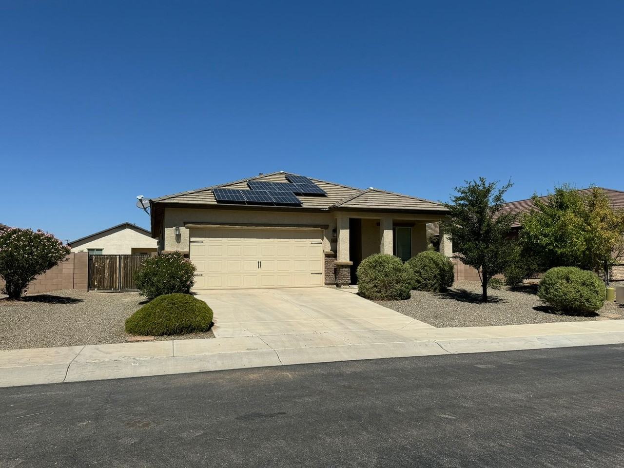 Spacious 3 bedroom, 2 bath home full of upgrades including Solar Electric with huge savings. Beautiful LPV flooring throughout. Large great room, Stainless steel kitchen appliances, granite countertops and custom wood cabinets. Large covered patio and fenced backyard with extended paver patio, pergola and double gate. This exceptional home is located within the amenity-rich community of San Lucas, featuring a community park, with basketball courts, sand volleyball courts and a baseball field, providing an extraordinary lifestyle for you and your family. Tenant to pay $87 towards Solar.