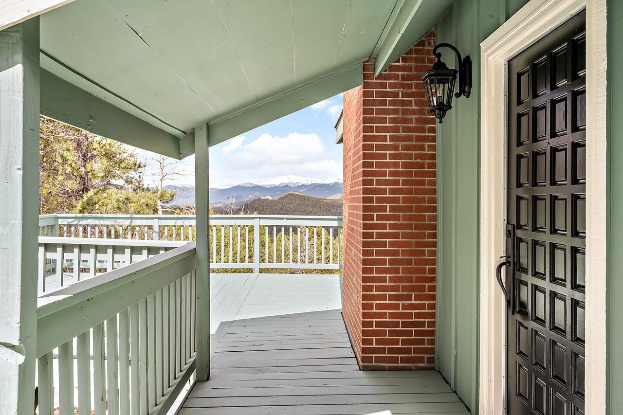 Discover breathtaking views from this beautifully upgraded home poised on a prime 2.2-acre lot in the heart of Conifer. Enter into a freshly painted interior drenched in natural light from large picture windows w/ Hunter Douglas blinds and automated energy-efficient cellar shades in the living area. Vaulted ceilings draw eyes upward in the living area grounded by a fireplace. Freshly remodeled, the kitchen boasts upgraded flooring, custom cabinetry and stainless steel appliances. Three generously sized bedrooms include a primary suite featuring a large walk-in closet and a cozy wood-burning stove. The baths have been completely remodeled, showcasing porcelain tile flooring, custom floating cabinetry, illuminated vanity mirrors and premium Kohler fixtures. Retreat outdoors to a vast deck to admire sprawling views, spanning from Mt. Evans to Lion's Head and Mt. Bierstadt. Upgrades include a newer roof + water heater, updated plumbing + electrical, newly painted exterior, radon system, Nest security system, security and landscape lighting. New Daikin ductless mini-split heating and cooling units are included, significantly reducing utility costs.