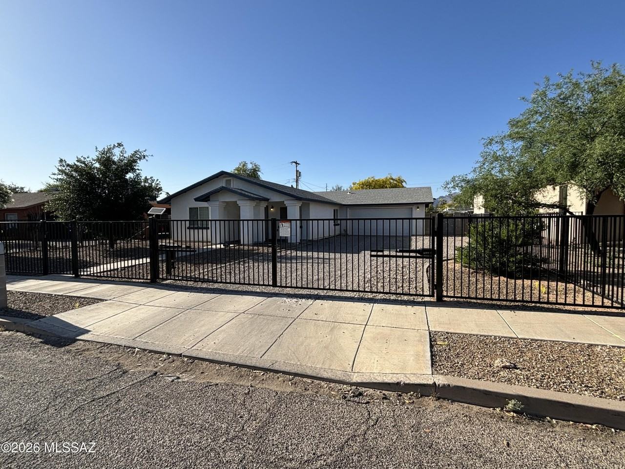 Property Status: Active Newer home with great security--gated entry and a fully enclosed front and back yard. Plenty of space for off-street parking, plus an oversized 2-car garage. Conveniently located within about 10 minutes of the University of Arizona and Banner - University Medical Center Tucson medical complex. Inside, you'll love the open layout with vaulted ceilings and easy-care stained concrete floors. The updated kitchen features granite tile countertops and lots of room to cook and gather, with space for both a cozy dinette and a larger dining area next to the living room. The primary suite is roomy and comfortable, complete with a walk-in closet and private bath. Two additional bedrooms share a spacious hall bathroom. There's also a full-size laundry room with washer and dryer included. In back enjoy a covered patio with pavers and a low-maintenance fenced yard--perfect for relaxing or entertaining. Office Phone: (520) 270-2535 Copyright © 2026 Multiple Listing Service of Southern Arizona. All rights reserved. All information provided by the listing agent/broker is deemed reliable but is not guaranteed and should be independently verified.