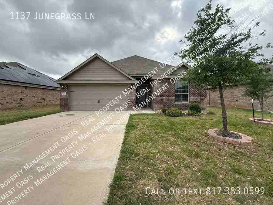 Welcome to 1137 Junegrass Lane in Crowley, TX—a beautiful newer home located in a highly desirable neighborhood and convenient location! This thoughtfully designed 3-bedroom, 2-bathroom home with a 2-car garage offers a spacious and inviting layout that’s perfect for both everyday living and entertaining. The open-concept living area features generous space and natural light, creating a warm and welcoming atmosphere for you and your guests. Each bedroom is well-sized for comfort, while the primary suite provides a relaxing retreat with ample space to unwind. In addition to the main living area, you’ll find a versatile bonus room—ideal for a home office, study, or even a second living space to fit your lifestyle needs. Whether you're hosting gatherings or enjoying a quiet night in, this home offers the perfect balance of functionality and comfort. Don’t miss the opportunity to make this stunning property your next home!