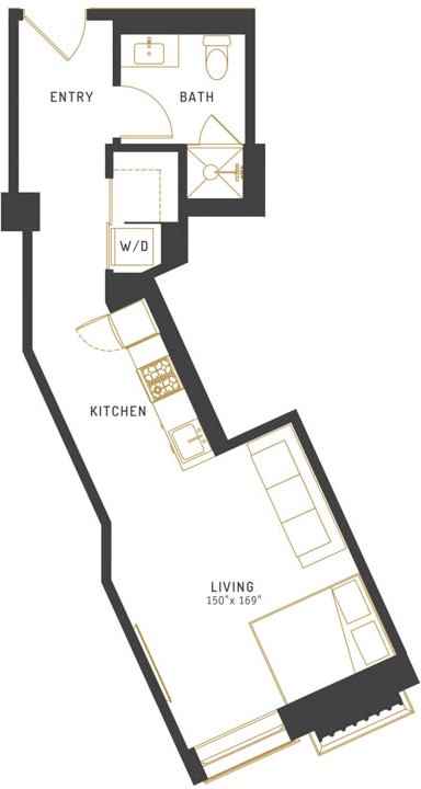 Studio 1 bath unit