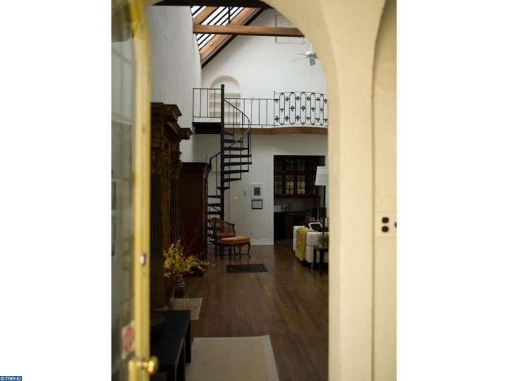 Unique opportunity for this one of a kind Main Line rental. This twenty by forty two foot space is thirty feet at the peak and has two open sleeping lofts, plus it's own intimate garden and terrace with rhododendrons, weeping willows and towering evergreens. Original architectural details include 30' skylight, marble fireplace surround, leaded glass windows and doors: built in oak bed, bookcases, cabinets and quartered oak floors. Amenities include washer/dryer, dishwasher, microwave, AC, free FIOS internet and TV; plus off street parking and free lawn and garden care. Great Space; Great Light; quiet neighbors; safe street.