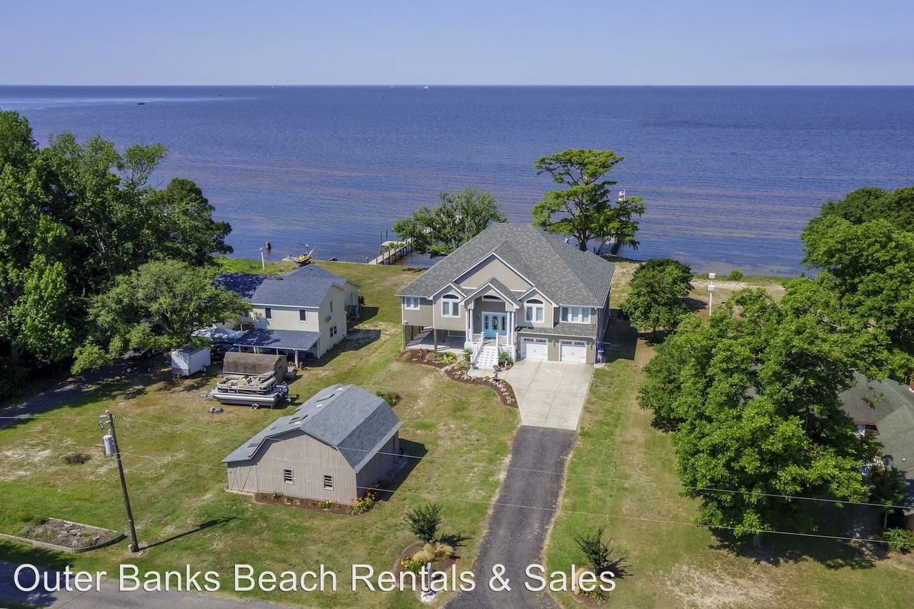 Luxury Soundfront with Panoramic Sunset Views - Live the dream with this incredible custom soundfront home with sunset views of the Albemarle Sound!. Home has spacious decks and screened porch. Gourmet kitchen is a chef's dream with stainless GE profile appliances including 6 burner gas stove with pot filler, dual wall ovens...convection and standard...raised Bosch dishwasher, farm sink, soft close Haas lighted cabinets, tile back splash,beautiful white granite counter tops, walk-in pantry, prep sink and Electrolux refrigerator. Great room area has Brazilian Cherry flooring, stately gas fireplace with custom hearth, elevator, custom window shades, plantation shutters, recessed lighting, beaded board wainscoting. Private master suite on soundside with deck overlooking the spectacular views, 2 walk-in closets, private bath with jet tub and river rock shower and separate water closets. 3 additional bedrooms and game room/office/bedroom on top level with private bath. Home also includes tankless water heater, outside shower, wired for pool, 2 walk-in attic spaces, 500 gallon propane tank in-ground and two car garage with additional storage. Bulkhead, pier and launch to complete the soundfront living. Furnishings not included in pictures. Utilities not included. No Pets Allowed