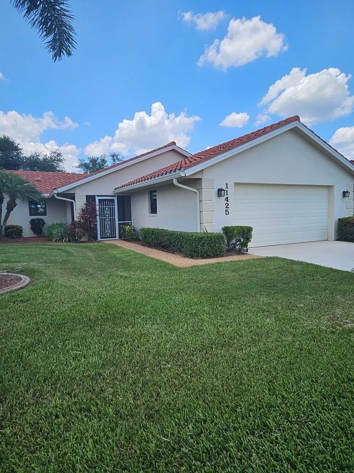 Beautifully appointed villa by an acclaimed artist, the high-end additions include 30K in upgrades, porcelain tile flooring throughout, stone countertops, glass tile backsplash SS appliances, recessed lighting, and hurricane impact windows. Rare and large 1672 sq ft villa with 2 bedrooms 2 bathrooms, and a 2 car garage, located in Kingsway on the golf course. Very serene, peaceful, and tranquil home. Mailbox and pool are steps away, close to the interstate, shopping and restaurants, HOA approval and registration required. No trucks or commercial. NO PETS as per HOA Called Liesa for more information 941-255-7220