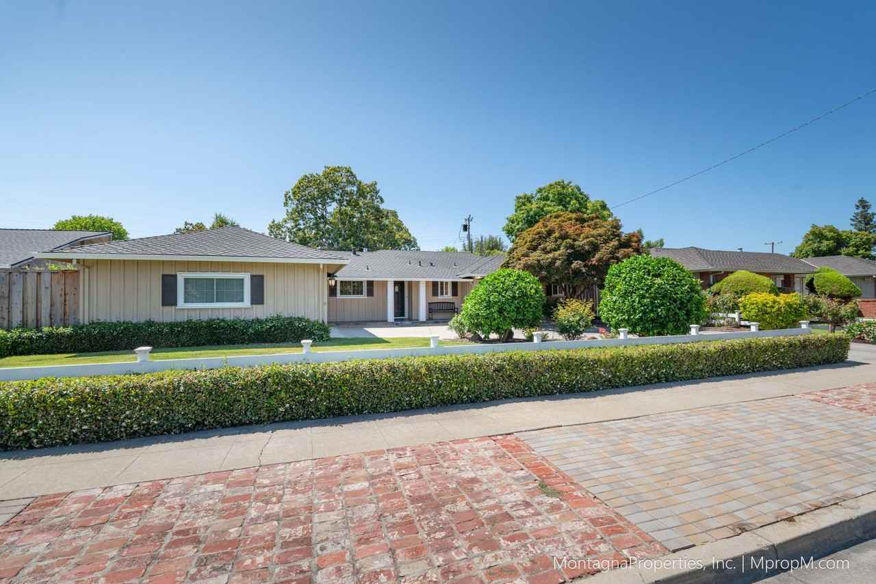 Updated single story home on a large lot in one of Willow Glen's most convenient neighborhoods. This 3 bedroom, 2 bathroom home is located on a beautifully landscaped 8,580 sq ft lot. Features include: Located on a quintessential tree lined street in Willow Glen. Large driveway leads up to the oversized 2 car garage with window and epoxy floors. White fence and mature landscaping enclose the front lawn and a brick path winds under a Japanese maple as it leads to the back yard. Inviting front porch with bench and sitting area. Enter into the spacious living room with custom built-in cabinetry and shelving, gas fireplace, recessed lighting and gleaming hardwood flooring. House has central heat and central AC as well as double pane windows with custom window coverings. Open floor plan with custom updated kitchen, built-in desk area and formal dining area. Kitchen has center island with breakfast bar, quartz countertops, custom backsplash, abundant counter and cabinet space, stainless steal appliances, large sink with window looking out to the front yard. Appliances include: electric range with oven and flat top stove, built-in microwave, dishwasher, side by side fridge with water dispenser and ice maker. Front load washer and dryer are provided and are located in the over sized two car garage. Interior has been freshly painted and the hardwood floors throughout the home have been well maintained and recently refinished as well. Large primary suite features ceiling fan, double closets with cedar floors and mirror doors. Primary bathroom has a large double vanity and updated shower over tub. Hall bathroom is also updated with a walk-in shower and white vanity with quartz countertop. Owner provides gardening service as well as trash pick-up and sewer service. Don't miss the beautifully landscaped back yard. Nearby schools include Schallenberger Elementary School. Great commuter location with easy access to Almaden Expy and all local freeways. Downtown Willow Glen is only about 2 miles away. Enjoy plenty of nearby shops, restaurants and more.