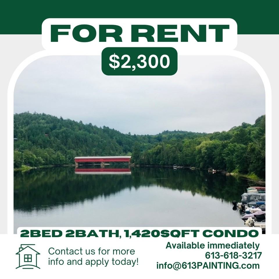 Wakefield WATER ACCESS 2BED 2BATH condo for rent immediately. Welcome to Wakefield living ๐ Wakefield Village, QC ๐๏ธ Available immediately (6 month min) ๐๏ธ 2 bed ๐ 2 bath ๐๏ธ 1,420 sqft condo with WATER ACCESS ๐ฐ$2,300 per month + utilities, wifi, & insurance ๐ ๐ ๐ x3 parking spots included ๐ถ Private docks on the Gatineau river ๐โโ๏ธ Heated Outdoor Pool ๐ Club house with kitchenette and community recreation room ๐ช Private Gym ๐พ Outdoor Tennis court ๐ป Private and shared gardens ๐ฅ x2 Fire pits ๐ฒ Peace and quiet in nature ๐ฆ Private storage shed โ๏ธ๐ป Snowplow removal service ๐๏ธ Walking distance to the Village ๐ฅพ Hiking Trails ๐ดโโ๏ธ Cycling ๐ฟ Skiing ๐ Snowboarding ๐โธ๏ธ Local rinks & community centres Description: 2 bed 2 bath 1,420 sqft condo with WATER ACCESS right by the famous red covered bridge. If you're looking for a place to call home outside of the city, only 30 min from downtown Ottawa, 15 min from Chelsea with very little maintenance, then look no further. This freshly painted, bright and spacious second level condo is available to rent (6 month minimum). Unfurnished. Including all appliances and in unit Laundry. Interior: Smart lock entry door allows you to easily monitor access to the condo remotely from your phone. As you walk inside and up the stairs you are welcomed by a very large open concept floor plan - living room (with gas fireplace), full kitchen with island perfect for hosting family and friends. Double doors open to the 30 ft balcony - views from here are of the Vorlage Ski Hill, evening sunsets and community green space. An overhead canopy can roll out above the large balcony to provide shelter. A long hallway leads you past the laundry to the main bathroom (full 3 piece) and bedroom number two. This bedroom has a large closet and oversized arched window that gets plenty of morning sun as it rises over the Gatineau river. At night you can see the stars as you fall asleep. Next is the primary bedroom with private balcony, two walk in closets and a very large ensuite - including a jacuzzi tub, shower, toilet and double sinks. Outside: this condo has plenty of indoor and outdoor space including: a community club house, two fire pits, large common area and green space including WATER ACCESS with DOCKS for swimming or boating. Fitness centre, pool and tennis court. Snow removal and lawn maintenance is also included. There is also a private storage shed included. Location: walking distance to the red covered bridge and the heart of the Wakefield village. Proximity to all that the Ottawa area has to offer with easy access to the city by car or public transportation, you'll never have to feel short on things to do. Hiking, skiing, golfing, swimming, boating, tennis, gym, yoga, shops, restaurants, workshops and more. Apply now before this rare 2 bed 2 bath condo with water access is gone. Must pass police background check Must pass credit report check and have records of employment Rental 6 month min Pet friendly No smoking Water included - well water system Utilities not included (heat, gas, wifi) Must have tenants insurance