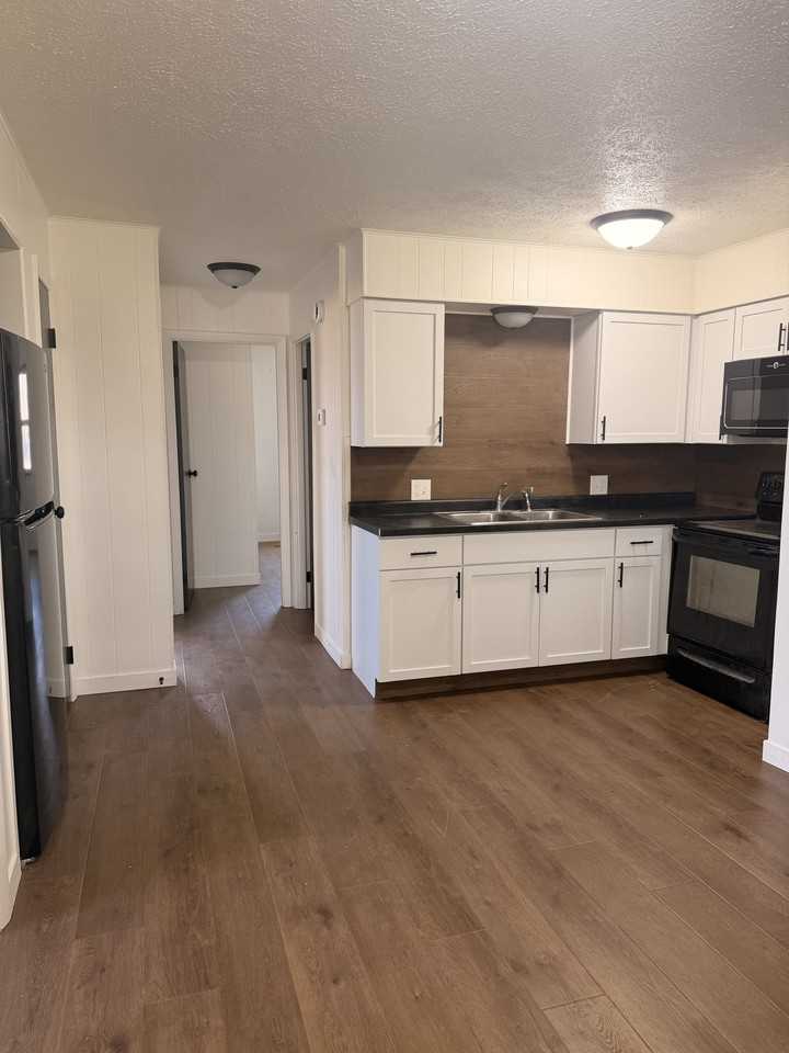 This unit has a living room, a kitchen with a dining area and laundry hook-ups. Two bedrooms, and a full bathroom. This unit has vinyl flooring throughout. Gas forced warm air furnace, no air conditioning, and a gas hot water heater. This is a ground level unit. NO PETS Rent includes water, and trash Tenant pays gas and electric separately This is a two story, four unit building, with two units on each level. There is a front and rear exterior access to each unit.