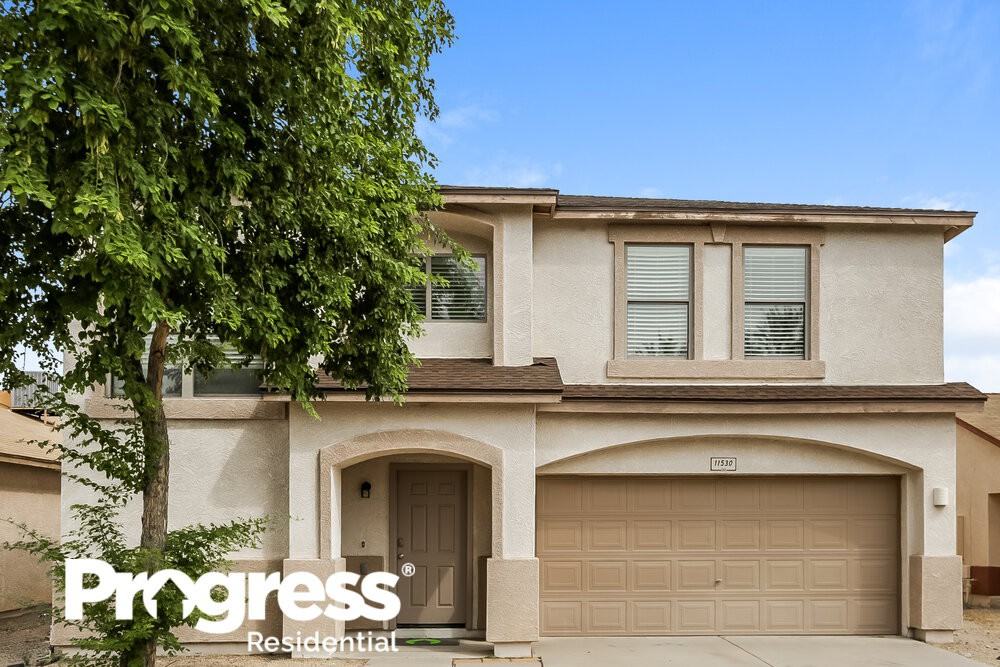 Want to tour on your own? Click the “Show Yourself In” button on this home’s RentProgress. com listing or call (602) 737-0660 to register for a self-guided showing at a time that works best for you. You'll adore the exquisite curb appeal of this three-bedroom, two-and-a-half bathroom rental home in El Mirage, Arizona. The expansive living room has vinyl plank flooring, a ceiling fan, and a convenient storage closet next to the stairs. You’ll find many excellent features in the L-shaped eat-in kitchen, including striking granite counters, recessed lighting, and access to a large walk-in pantry. An elegant chandelier hangs in the adjacent dining room, which also includes a sliding door to a small covered patio and a large fenced yard. Upstairs is where you'll access the massive main bedroom suite, which has a ceiling fan, three windows, a huge walk-in closet, and an even bigger en suite bathroom. Apply today for your tour.