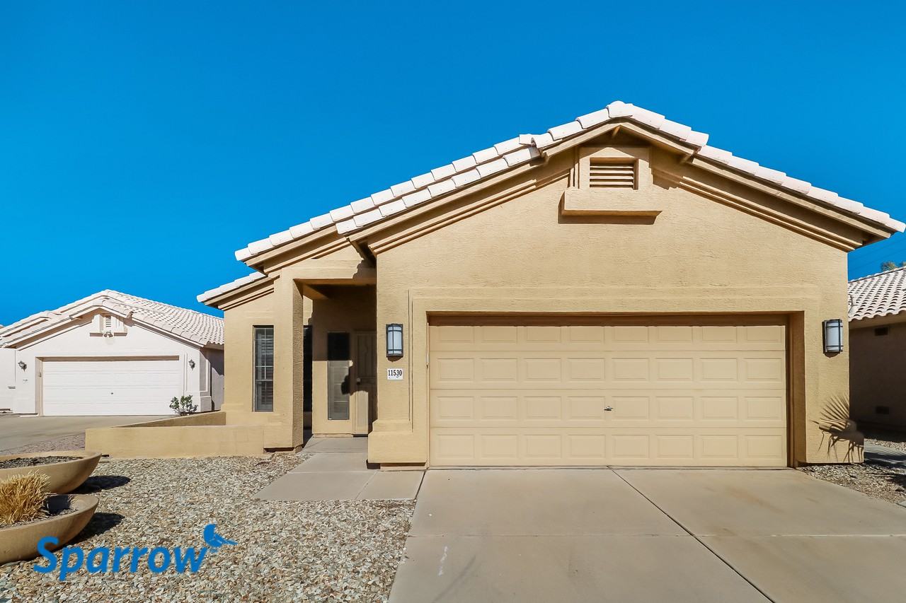 This classic 3 bedroom, 2 bath, single story home with 2 car garage is in the Coyote Lakes community of Surprise, AZ. Nestled between the 60, 303, and 101, you’re never far from the best shopping, dining, entertainment, and schools (Dysart UD) the area has to offer. The Coyote Lakes community amenities include a park, walking trails, and discounted membership rates at the Coyote Lakes Golf Club & Coyote Lakes Recreation Club. This home is filled with new features and fixtures including a brand-new AC system, new interior paint, and freshly painted cabinets. As you enter the home, crisp tile flooring carries you into the living, dining, and open kitchen. The kitchen features all stainless-steel appliances, Formica countertops, plenty of cabinetry, a pantry, and a breakfast bar island adjacent to the breakfast nook. Your spacious owner’s suite includes access to the patio and an en-suite bath with large walk-in closet, custom dual vanity sinks, garden tub, and modern open walk-in shower. The remaining 2 bedrooms also feature great closet space, plenty of natural light, and share a full bath. Outside, enjoy your fully walled backyard from the comfort of your covered extended slab patio. Don’t miss out on this modern flexible home and vibrant community – schedule a tour or apply today!