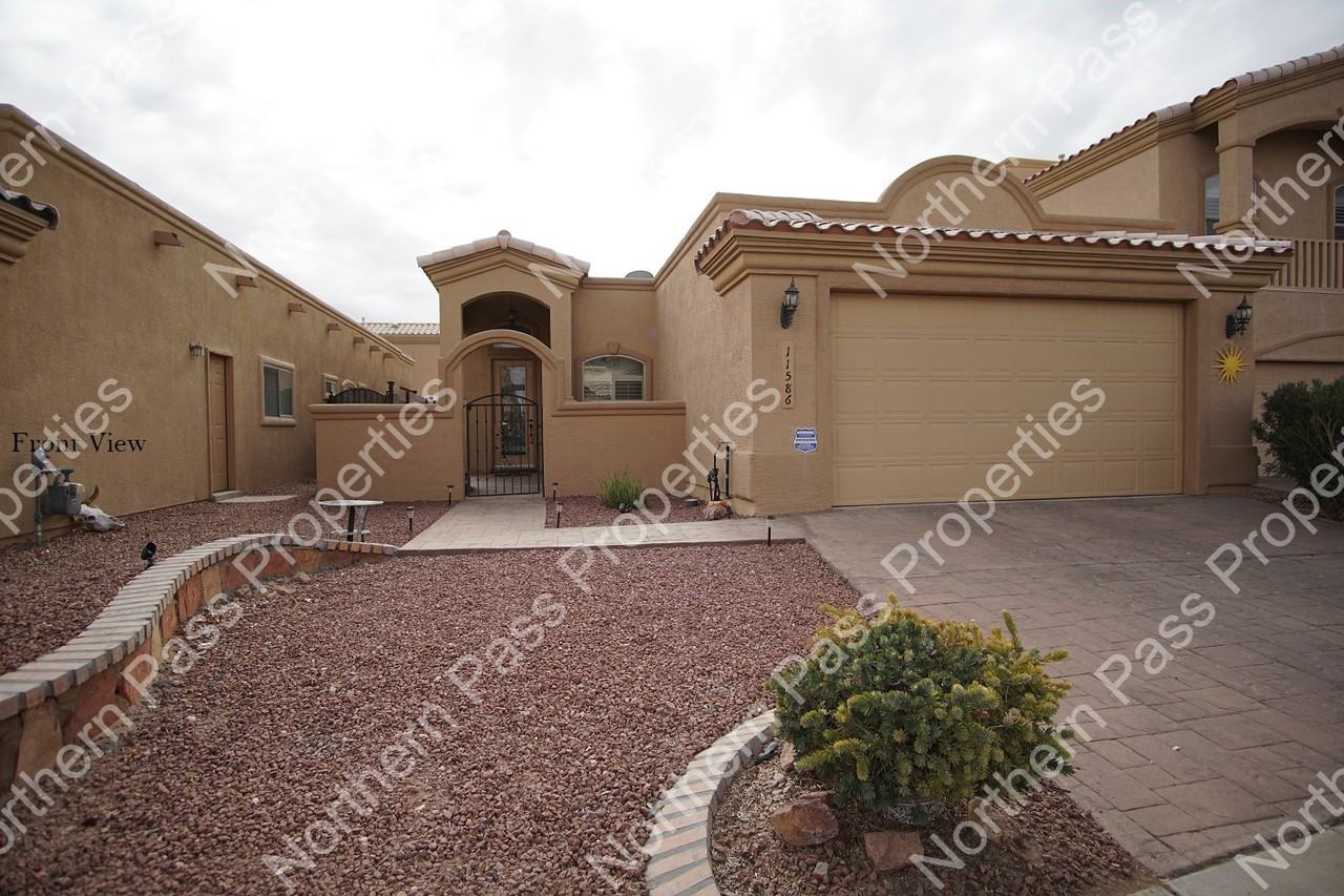 Beautiful 3 bedroom home in gated community! This home features a gated front courtyard, refrigerated ac, wood shutters, crown moldings and tile throughout the entire property. Living area has high ceilings and fireplace. Dining area is open to the kitchen and has bay windows. Kitchen comes fully equipped with stainless steel appliances. It features granite counter tops, small island and custom cabinets. Property has 2 good size guest bedrooms with great closet space and ceiling fans for additional comfort. Gull guest bath features a jacuzzi style jetted tub! Master bedroom is large in size and has a walk in closet and a full size master en-suite with dual vanity sinks, garden tub and separate stand up shower. Lets not forget to mention that the home has a laundry room with washer and dryer included and additional cabinet space! Las Palmas community also offers gated access, an outdoor pool, clubhouse, playground, tennis and basketball courts. Call us for more information, se habla espanol!! 9152199158 **1 Week Free Rent with Immediate Move In** Security Deposit $1495 O.A.C Deposit due in full upon approval, property can only be held for 2 weeks from the date the deposit is paid Application Fee $27.50 apply online at www nppelpaso com All pets subject to approval