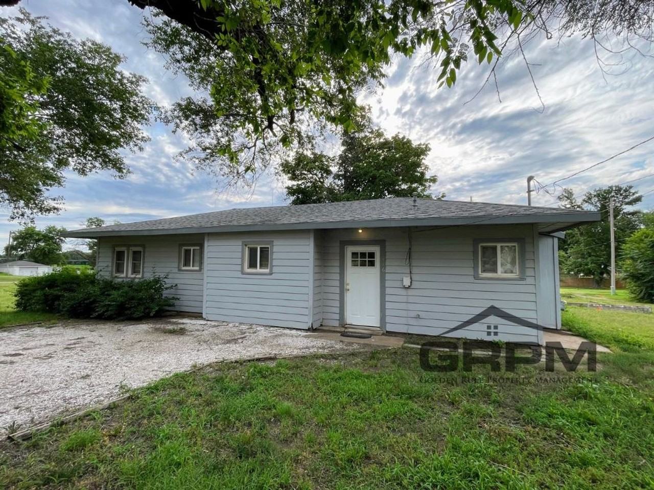Three bedroom, two bathroom home in the quiet town of Arlington just 25 minutes from Hutchinson! New paint throughout. Spacious living room and kitchen. Master bedroom has lots of storage space. Open deck looks over a large area in the back of property perfect for gardening! Small storage shed included. Quiet small town living, with the convenience of town just a short drive away. Tenant responsible for lawncare and all utilities. Fridge and stove provided. Washer and dryer hookups. Fill out a free application on our website hutch. house and we will consider a showing! Call Sadie or Allison at 620-960-1120 with questions. -GRPM