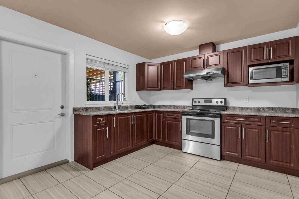Excellent opportunity to rent a suite on a month to month basis, if your in transition or just relocating this suite is up for rent without a lease term. This home is FOR SALE, potential buyers may keep the tenancy. 2 bedrooms 1 full bathroom with tub Covered patio with an area for a patio table/bbq. Nice sized laundry room with sink and cabinets (shared with a one bedroom suite, currently vacant) Bright with lots of windows Ample cabinet space in kitchen No Pets Includes Utilities cable/wifi Avail Now Freshly painted and professionally cleaned.
