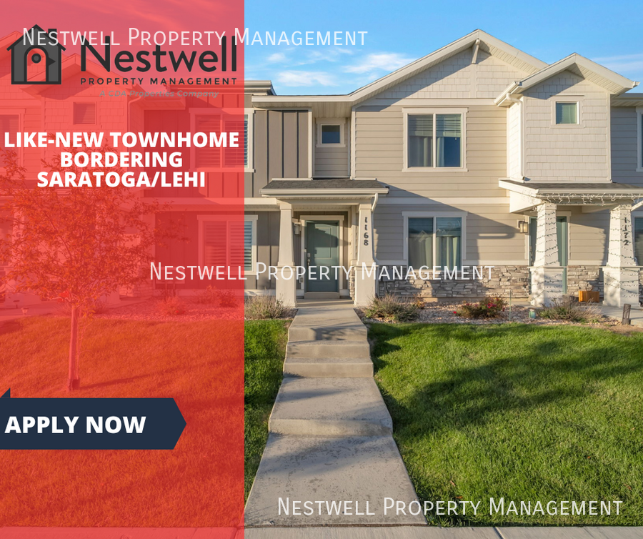 Newer D.R Horton Townhome in a great location just south of Pioneer Crossing, right off Saratoga Rd, just at the border with Lehi. Easy access and close entrance to and from the neighborhood, shopping, and schools. In an HOA community with swimming pools, sports courts, a dog park, playgrounds, and much more. Schedule your Showing Appt. ONLINE NOW! Showing times don't work? Please call or chat for assistance AVAILABLE DATE: 5/2/2026 LEASE LENGTH: 12 Months OCCUPANCY RULE: No more than x unrelated adult occupants TYPE: Two-Story Home w/out Basement FINISHED SQ FT: 1352 PARKING: 2-car garage plus guest parking behind the home FEATURES: - 3 Bedrooms - 2 Bathrooms - Stainless Steel Appliances - Quartz Countertops - Gas Stove - Cold Storage - Living room - Ring Doorbell - Radon System - DR Horton build - Washer & Dryer (included) - Crawl Space Storage - New Property (less than 5 years) - ADT Security/Wired Cameras (tenant to pay for service) - And more... TENANT CHARGES: - Resident to sign/pay for gas & electricity - Resident to pay water, sewer, and garbage monthly - Resident to pay $100 HOA Fee per month - Resident Benefits Package (RBP) = $34.95 per month**. https tinyurl com NestwellRBP - Monthly Tenant Legal Liability Protection (MTLLP) = $15.95 per month.**https tinyurl com NestwellPDLW - Security Deposit = Same as rent, depending on application score (fully refundable) - Application Fee = $50.00 per applicant 18 and older - Lease Initiation Fee = $150.00 after approval and upon signing - Pet fees as listed (if applicable) - If the mailbox is a community box that requires a key, it is owned by the Postal Service. A small fee may be required to get mailbox keys upon move-in. *If a washer and dryer are offered, this is owner courtesy, and they may choose not to repair them HOA INCLUDES: - Pools, clubhouse, playgrounds - Dog park, pickleball, and basketball courts - Playground, landscaping, and snow removal of private streets YARD CARE: Maintenance-Free Community! PETS: - $359.00 per pet security deposit ($179.50 refundable) and $55.00 pet rent per pet. - You will be required to fill out an animal profile and will be provided the link after you have submitted your application and paid the fee. - No resident or residents at any one premises shall at any one time own, harbor, or license more than TWO total animals in any combination - UP TO TWO PETS will be considered if they meet our pet guidelines. https tinyurl com Nestwellpetpolicy - The pet application fee is $30 for the first pet, $30 for each additional pet, and $0 for assistance animal accommodation requests. - For puppies & kittens less than 12 months old, there is a non-refundable fee of $100 and a monthly charge of $10/month until the pet reaches 12 months of age in addition to the regular fees. NO Smoking or Vaping is permitted in or on the property. SHOWING INSTRUCTIONS: To schedule a showing online NOW, push on the button below, or TEXT/Call one of our amazing Showing Specialists - 801-396-9288 Schedule a Showing Online TO APPLY: - www Nestwellrentals com - $50.00 application fee per adult to be paid at the time of application. - All applicants will be required to fill out an animal profile, even if they do not have a pet. The link will be provided after you have submitted your application and paid the fee. - Review application criteria and deposit Info before applying. tinyurl. com NestwellRentalCriteria - All applications are reviewed. Order of application is ..