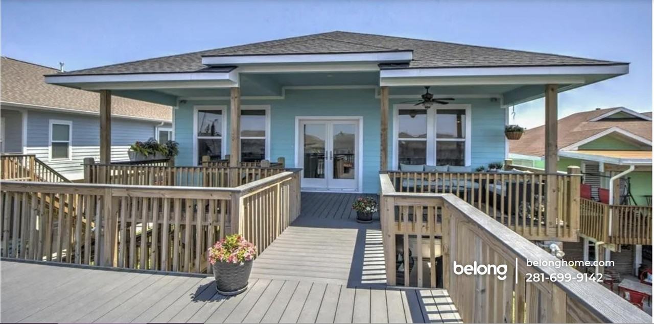 Feel the fresh breeze in this 3-bedroom, 2-bathroom, coastal-style home packed with an airy interior and a brilliant floor plan! This gem sits right on the canal, offering your own boathouse, party deck, and fishing pier for everyday fun. You’ll love the covered outdoor kitchen and expansive deck—perfect for grilling with a view or relaxing with a cold drink in hand! Inside, you'll find an open-concept layout with wood-look tile, a gas fireplace, and trey ceilings that add just the right touch of elegance. The kitchen is both practical and sleek, with quartzite countertops, stainless steel appliances, a center island, and plenty of custom cabinetry. In the primary suite, you’ll find a walk-in closet and ensuite with dual vanities and a soaking tub/shower combo. Two more bedrooms round out the space, giving you flexibility to host or work from home. Living here means you're less than 10 minutes from Galveston Bay and only 5 minutes from First Stop Food Store for quick errands. The Bayou Vista Community Center is nearby too, with events and programs to keep you connected year-round. *Fireplace is for decorative use only and cannot be used without consent from Belong. *Our homes come as-is with all essentials in working order. Want upgrades? Request it through the Belong app, and our trusted pros will take care of the rest!