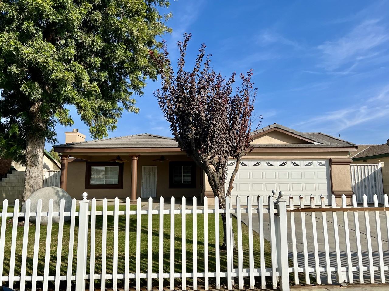 This 3-bedroom, 2-bathroom house has high ceilings, a cozy fireplace, and fresh paint inside and out. It comes with air conditioning, tile floors, and a laundry room. The kitchen has an oven. The front and back yards are fenced for privacy, and there's a 2-car garage. Pet friendly.