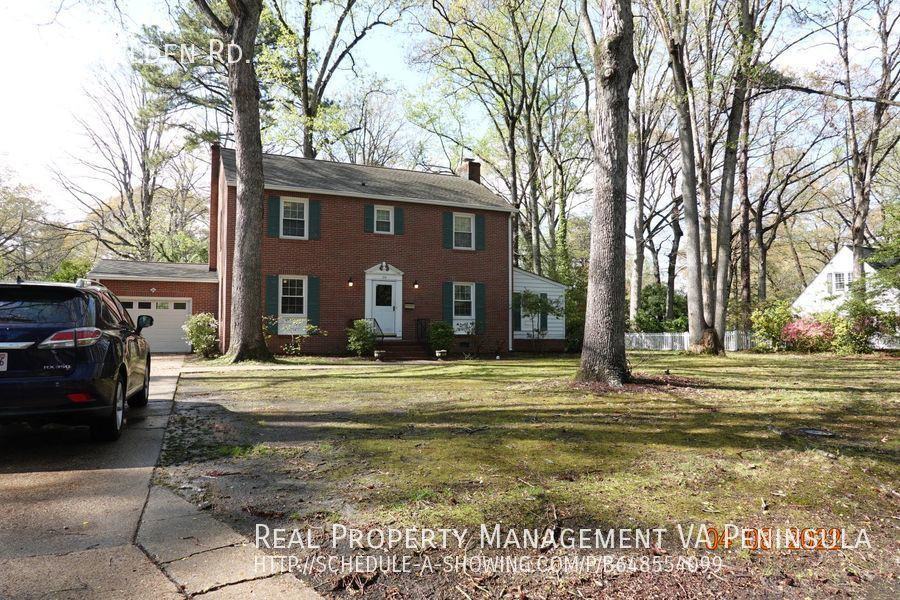 Large well-maintained 2 stories brick colonial single home with 5 bedrooms in Riverside of Newport News. Living room with electric fireplace. Large den/office with built-in bookshelves and tile flooring. Dining room. The kitchen is equipped with an electric range, refrigerator, built-in dishwasher & vinyl floors. The downstairs bedroom is next to the half bath.4 bedrooms and 2 full baths including primary bedroom upstairs. Hardwood floors throughout. The one-car garage with washer/dryer hookups on a partially fenced 0.78-acre lot. The house is oil heated with central AC upstairs. Convenient location. Five minutes driving distance to Mariner's Museum, CNU& Mary M. Torggler Fine Arts Center, Furgerson Center of Arts, VA living Museum, Riverside Hospital, Riverside residents-only beach, and restaurants & shopping. Pets OK with restrictions. 360 Degree Virtual Tour Built In Dishwasher Electric Range Maximum 3 Pets Maximum 40 Lbs One Car Garage Pets Allowed Residents Only Riverside Beach Study/Office Washer/Dryer Hookups