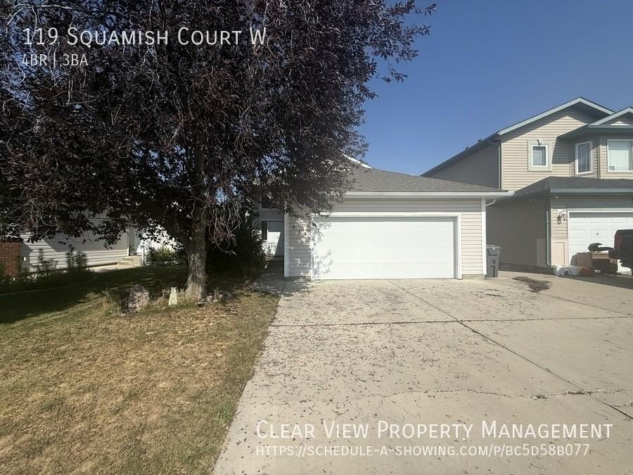 Welcome to 119 Squamish Court W โ a beautifully maintained 4-bedroom, 3-bathroom bi-level with over 2,400 sq. ft. of living space in a quiet, family-friendly neighborhood. Step inside to a bright, open layout with modern finishes and plenty of room for both relaxation and entertaining. The main floor features a spacious kitchen with center island, ample cabinetry, and a seamless flow into the living area, which opens onto a large deck and fully fenced backyard. The primary bedroom includes a private ensuite, while a second bedroom and full bathroom complete the main level. Downstairs, enjoy a cozy family room with a brand new remote-controlled gas fireplace, two additional bedrooms, another full bathroom, plus a generous laundry and storage area. The home also offers a double attached garage, driveway parking, central A/C, central vac, and brand-new appliances throughout. โจ Key Features ๐ 4 Bedrooms / 3 Bathrooms (2 up, 2 down) ๐ณ Brand new appliances: fridge, gas stove, microwave, dishwasher, washer & dryer (gas & electric hookups) โ๏ธ Central A/C & Central Vac ๐ฅ New gas fireplace in basement (remote-controlled) ๐ Double attached garage + driveway parking ๐ณ Fully fenced yard + new deck ๐ถ Built-in baby gate for added safety ๐ Additional Details ๐ 2,414 sq. ft. of living space ๐ West Lethbridge โ close to schools, shopping, parks & the University ๐ธ Video tour here: https youtu be 39ORd-0geuQ ๐ Schedule a viewing here: https www clearviewpropertymanagement ca search-rentals Lease Details: ๐ฐ Security deposit is equal to one monthโs rent ๐ก๏ธ Tenant insurance is required ๐ก Utilities are not included ๐พ Got a pet? Small pets may be welcome with a $50/month pet fee (per pet) All residents are automatically enrolled in our Tenant Benefit Package, which includes: โ๏ธ Easy-to-use online portal for rent payments and repair requests โ๏ธ Furnace filter delivery every six months (if needed) โ๏ธ 24/7 maintenance support for peace of mind โ๏ธ Free e-payments each month โ๏ธ One lockout service included every six months A quick rental application is required, and weโll reach out to your references before final approval. Ready to apply? โ Click here to start your application: https www clearviewpropertymanagement ca tenants apply-online