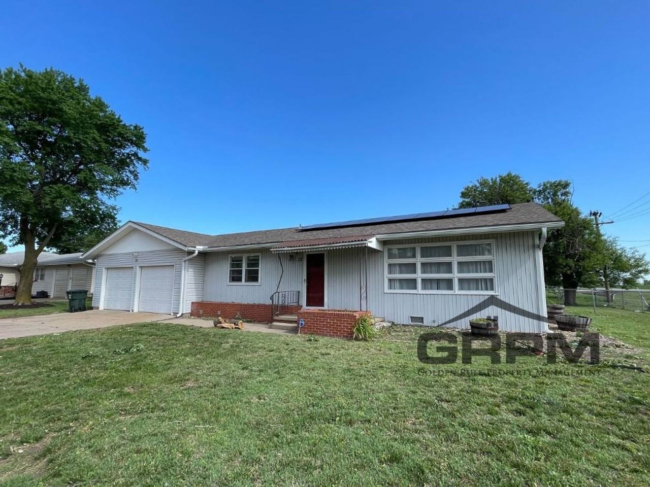 Don't miss this charming 3-bedroom, 2-bath home in Haven, KS, just west of Wichita. Recently updated with solar panels that'll keep your electric bill low, this home features a spacious living room with original wood floors and ample natural light. The kitchen and dining area have a delightful retro vibe. All bedrooms are roomy with original wood flooring. Both bathrooms have been stylishly remodeled. The 2-car garage includes a storm shelter and a workshop with a built-in bench. The large, fenced backyard is perfect for kids, entertaining guests, or letting your dog run. Tenant pays all utilities. Fill out a free application on our website www hutch house and we will consider a showing! Call Sadie or Monica at 620-960-1120 with questions. -GRPM