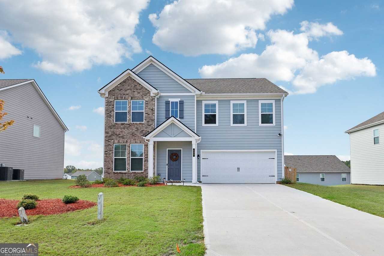 Welcome home to this 1 year old, 4 bedroom 2.5 bathroom home in one of Newnan's newest communities! This home features an open concept with tons of natural light and space! The kitchen has stunning quartz countertops, all SS appliances, an island and looks directly into the family room. The beautiful modern fireplace adds a nice touch to this home! As you enter the home you are welcomed by the formal living and dining room with breathtaking floors! Upstairs you will find the oversized primary suite with a large walk in closet, dual sink vanity, soaking tub and separate shower. The secondary bedrooms, second full bathroom, large bonus room and the laundry room are all conveniently located upstairs! The fenced in backyard adds plenty of space for your pets or children to run around! This home is located across from the communities pool, mailboxes and playground. This one is truly a must see!