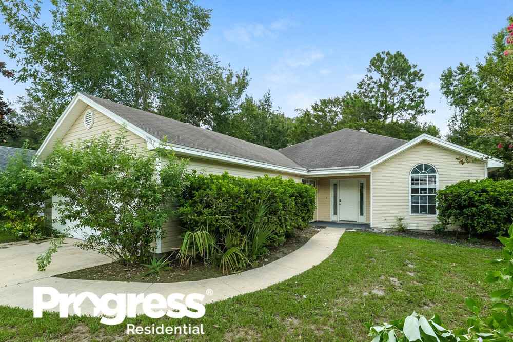 Please note, our homes are available on a first-come, first-serve basis and are not reserved until the lease is signed by all applicants and security deposits are collected. Want to tour on your own? Click the “Show Yourself In” button on this home’s RentProgress. com listing or call (904) 900-2642 to register for a self-guided showing at a time that works best for you. This home features Progress Smart Home - Progress Residential’s smart home app, which allows you to control the home securely from any of your devices. Learn more at rentprogress com smarthome A long, curved pathway and attractive greenery welcome you to this charming rental home in Jacksonville, Florida. The renovated house includes three bedrooms, two bathrooms, and a bonus playroom. There is an attached two-car garage in front. With ceiling fans and beautiful flooring, you'll love the special touches throughout the home. The spacious living room features a vaulted ceiling and a gorgeous stone fireplace. You'll appreciate the clean, bright kitchen. It boasts modern stainless steel appliances, quartz countertops, and an adjoining breakfast nook. A formal dining room is around the corner. The comfortable main bedroom features twin walk-in closets and an en suite bathroom. The large backyard includes a covered patio. Schedule your tour of this lovely rental home today.