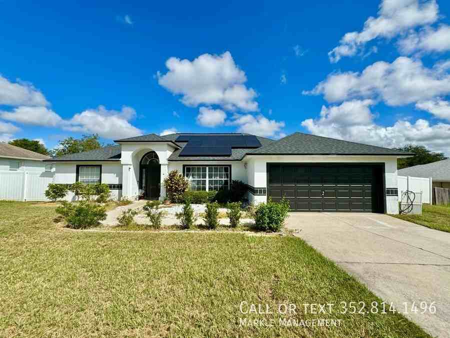 This home in Cranes Landing East features a highly sought-after layout with 3 bedrooms and a generous den/office space. The open-concept design creates a seamless flow from the living room into the bright, spacious kitchen. There's also a separate office or playroom that offers a quiet space for work or play without disturbing the rest of the home. Two of the bedrooms share a Jack-and-Jill bathroom, providing extra privacy for guests. The large master suite boasts a deep walk-in closet and a luxurious ensuite with a dual vanity, granite countertops, new flooring, and a walk-in shower. The backyard is fully fenced and perfect for outdoor entertaining, offering plenty of space and privacy. The home is equipped with solar panels resulting in an average utility bill of $30 per month and a water filtration system. This home is conveniently located near South Lake High School, golf courses, and shopping.