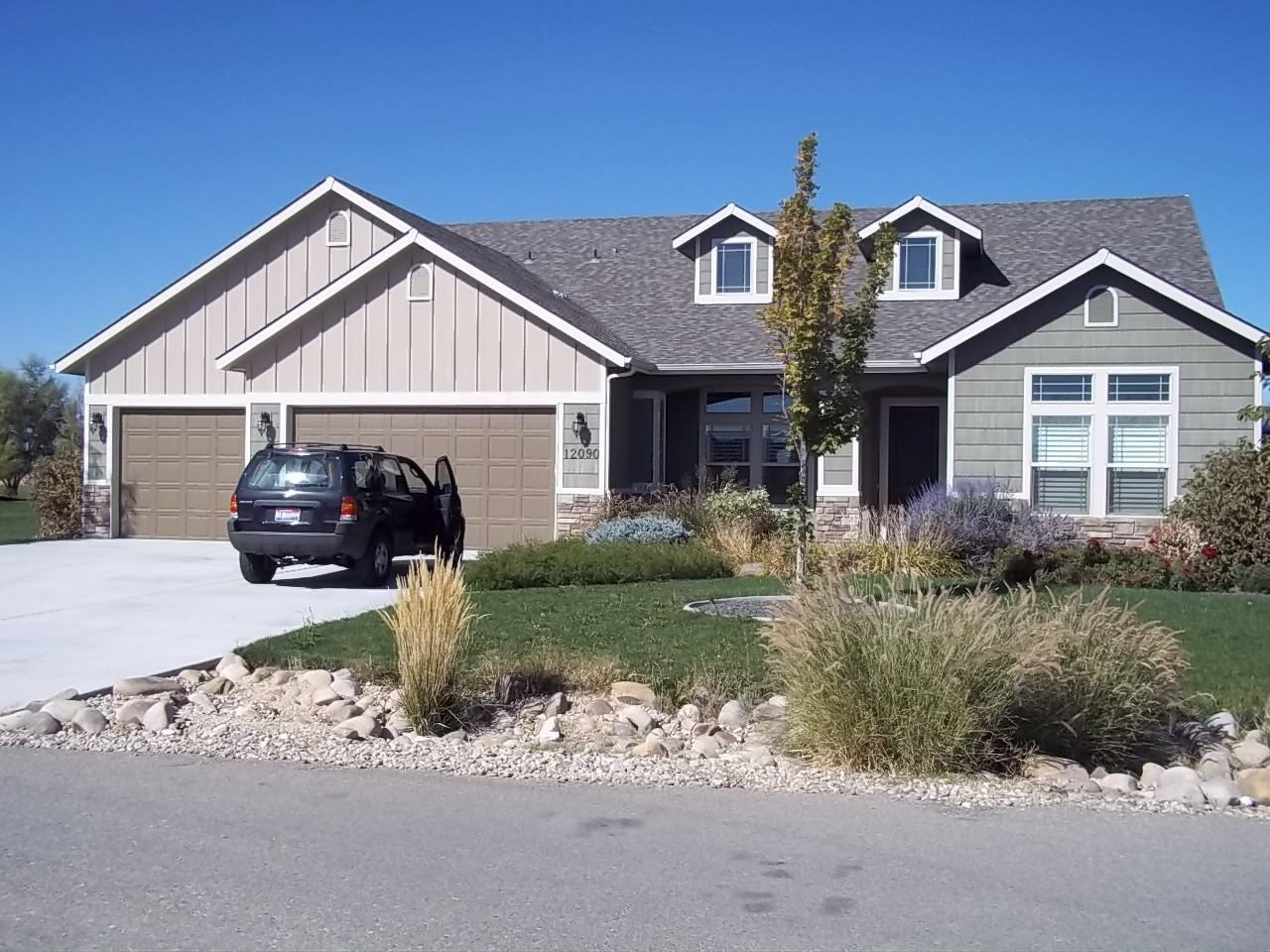 Gorgeous home built by Riverwood Homes in Arrowrock Ranch subdivision off of Cloverdale & Kuna Mora Rd. This contemporary home boasts large bedrooms, formal dining, stainless steel appliances in the kitchen and so much more. All bedrooms are located on the main level with the master suite situated in the back for the utmost privacy. The master bathroom has dual vanities, a tiled walk in shower and a luxurious raised tub. The master closet is fully shelved, has a full length mirror and a sitting bench. Upstairs is a large bonus room WITH a full bathroom. No back neighbors will make evenings on the back patio a treat. This home is not fenced and not pet friendly. Subdivision has its' own well and septic.