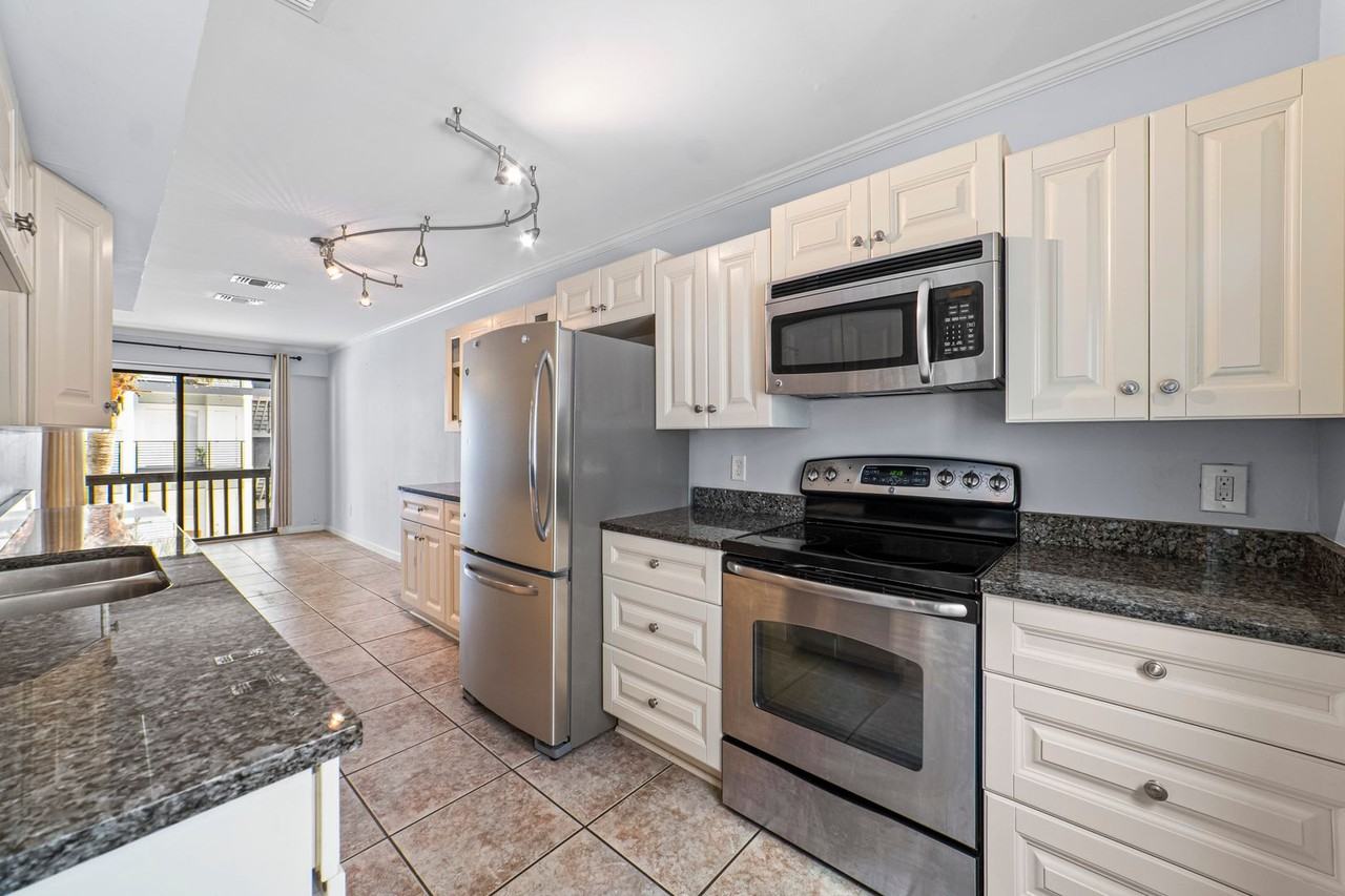 - Sleek stainless steel appliances