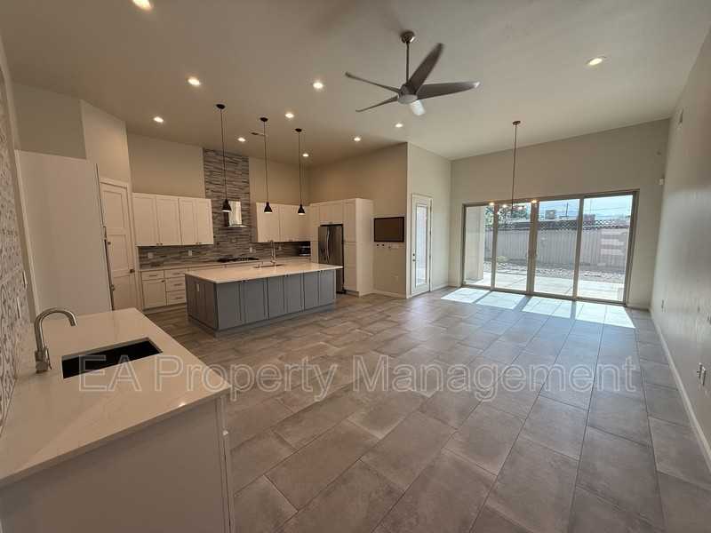 Built in 2021, this 1,826 sq ft. This home pairs modern design with everyday comfort: 12-ft ceilings, an entertainer's wet bar, and a quartz-topped chef's kitchen flow to a covered patio. Three bedrooms each feature an oversized closet, while the luxe primary suite adds a freestanding tub and snail shower. A finished two-car garage, refrigerated A/C, and low-maintenance landscaped yard complete the home—all just a short distance from Sawmill Market, Old Town, museums, and downtown.
