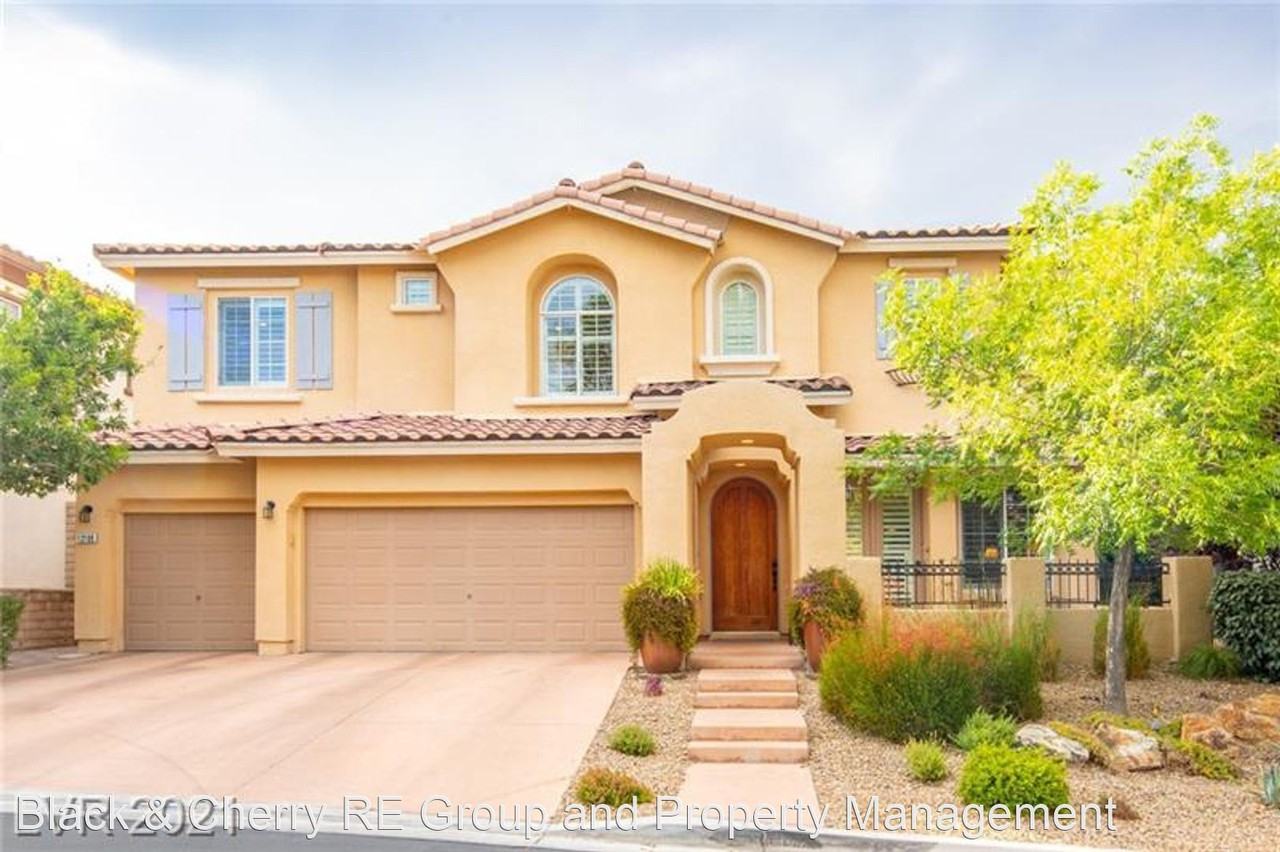 A true Masterpiece in Summerlin - Truly a MUST SEE! Attention to every detail. This beautiful home with a backyard oasis featuring a heated sparkling pool/spa, lush landscaping perfect for entertaining! Spacious floorplan, amazing rod iron staircase, hardwood and travertine floors, plush carpeting, framed shutters, crown molding, stunning light fixtures, ceiling fans, & built-ins! True chef's kitchen with massive island, stainless appliances, dual ovens, custom backsplash, & walk-in pantry! The living room has a built-in entertainment center with a gorgeous fireplace. A Beautiful primary suite has an awesome walk-in closet, romantic fireplace, and walk-out balcony, the spacious loft also has balcony access, downstairs bedroom perfect for guests or office. Close to all the best amenities including parks, trails, schools, Downtown Summerlin, and more! No Cats Allowed