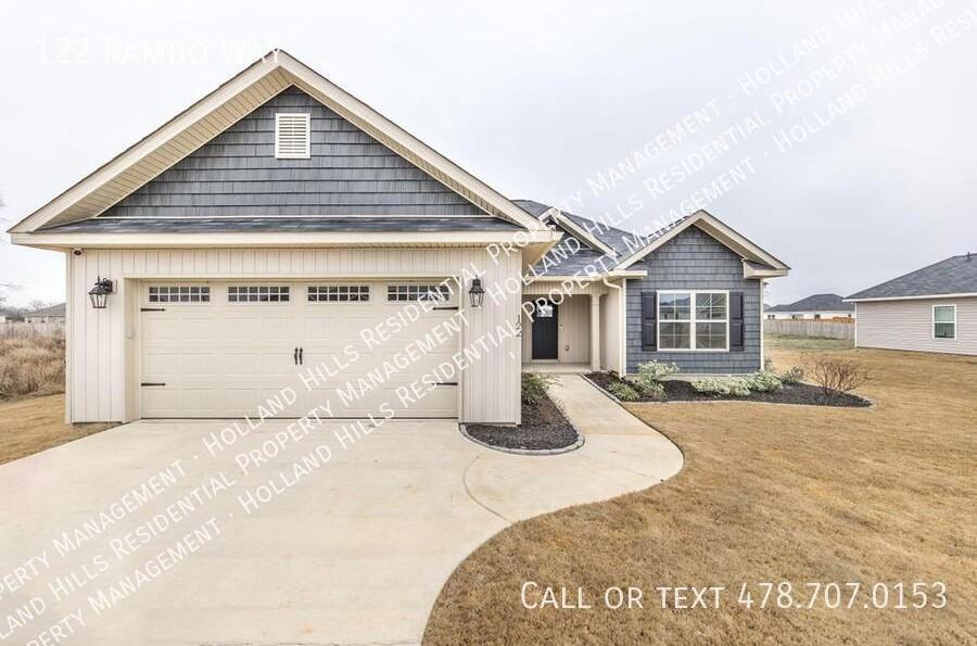 This stunning open-concept home boasts 3 bedrooms and 2 full baths! It features a generously sized family room and a beautifully designed primary bedroom with a custom double vanity. Key highlights include: LVP wood flooring in all main living areas, granite countertops in the kitchen, and stainless steel GE appliances. The bathrooms showcase elegant tile floors paired with marble countertops, while carpet is found solely in the bedrooms. Enjoy relaxing on your covered back porch that overlooks a lovely backyard. Additional perks include a 3-zone sprinkler system, a 2-car garage, washer and dryer included, and much more. PETS WELCOME for additional fee. Schedule your tour today!