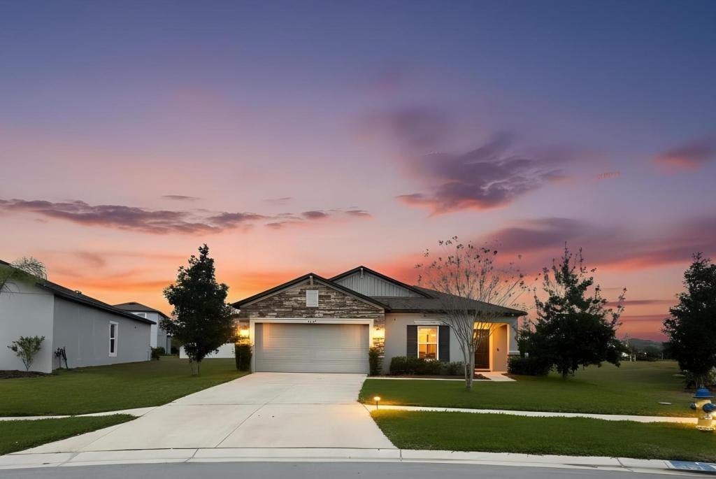 **AVAILABLE FOR RENT IMMEDIATELY** Welcome home to style and serenity at 12218 Gothic Rd. Built in 2020 and meticulously maintained, this home feels practically brand new from the moment you arrive. Enter through the covered front entry into a welcoming foyer. Just off the entry is one of the three secondary bedrooms-perfect for guests, a teenager wanting their own space, or a home office-along with the first of three full bathrooms conveniently nearby. As you move further into the home, you'll step into the heart of the house: a bright, open entertainment space designed for everyday living and hosting. The spacious kitchen features a HUGE center island, tall cabinetry, stainless steel appliances, granite countertops, and a stylish blue backsplash, all overlooking the dining and living areas. The open floor plan makes this space feel airy, inviting, and ideal for entertaining. Two additional bedrooms are located on the side of the home behind the kitchen, along with a second full bathroom and laundry room that leads directly to the two-car garage. The spacious owner's suite offers a relaxing retreat with a large walk-in closet and a well-appointed en-suite bathroom you'll look forward to using every morning. Bedrooms are carpeted for comfort, while the main living areas feature easy-to-maintain tile flooring throughout. Step outside to the open backyard, where a covered porch and serene pond views create the perfect space to relax and unwind. This home truly offers comfort, functionality, and peaceful surroundings-all in one beautiful package. *A few photos have been virtually staged to help show how the space can be used. The home is rented unfurnished*