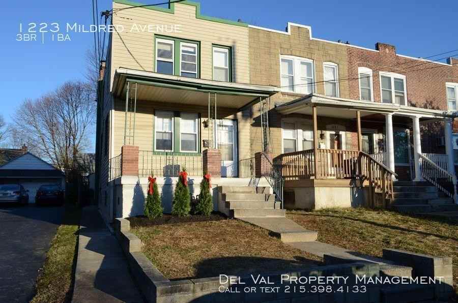 Listanza ID 21971818 ---- SCHEDULE A SHOWING ONLINE AT: showmojo. com lt a7cd4470de ---- About this Property: Newly Updated, 3-Bedroom End-of-Row Home For Rent Now ? 1223 Mildred Avenue $1,395/month plus utilities. Tenant responsible for lawn and snow removal 3 Bedrooms 1 Bathroom Parking is unlimited on street Other rooms include Kitchen, large sunny Living Room and Dining room Kitchen has Gas Stove, Refrigerator, Built-in-Microwave, newer cabinets and wood laminate flooring Washer / Dryer Hook-ups are located in clean dry basement with storage space Ridley School District; walking distance to Elementary School Cable ready Freshly painted Hardwood flooring in Living and Dining rooms The upper level features New Carpet in 2 Bedrooms Master Bedroom has Laminate Wood flooring and two spacious Closets Bathroom is updated bathroom with Tile flooring Fenced-in back yard, perfect for BBQs and recreation Storage Shed has electric Front porch is newly refurbished and offers protection from inclement weather Heated with Gas radiant heat and is cooled with window a/c (not included) Close to shopping, eateries, pharmacy, convenience store, MacDade Blvd, Chester Pike. Crum Lynne Train Station, I-476, I-95, and within 15 minutes from Philadelphia International Airport and convenient to Boeing Manufacturing, Swarthmore College and Widener University Pets considered with Owner approval and $25/month Pet Rent and $300 refundable Pet Deposit We offer a one year lease or longer if needed Showing by appointment only Questions / Showing - To schedule a showing please call 215-398-4133 or visit our showing software at at Schedule A Showing Application Process - To apply for this property there is a $40.00 non-refundable application fee and applicants must put three months down to move in (first month, last month, and security deposit). Del Val Realty &; Property Management will review your income(s), credit, rental and employment history and other information in order to verify that you qualify for the property. Unless otherwise noted in the ad, regretfully our policy is that pets are not permitted in our rental properties. To apply online please go to Del Val Application Page Other Del Val Properties: To see our other properties for rent please go to our Rental Page at Philadelphia Homes For Rent Property listed by: Del Val Realty & Property Management 81 Lancaster Avenue, Suite 218 Malvern, PA 19355 484-328-3282 Website: https www delvalproperty com Philadelphia Property Management All information, regardless of source, is not guaranteed, and should be independently verified. 1 year or longer if needed