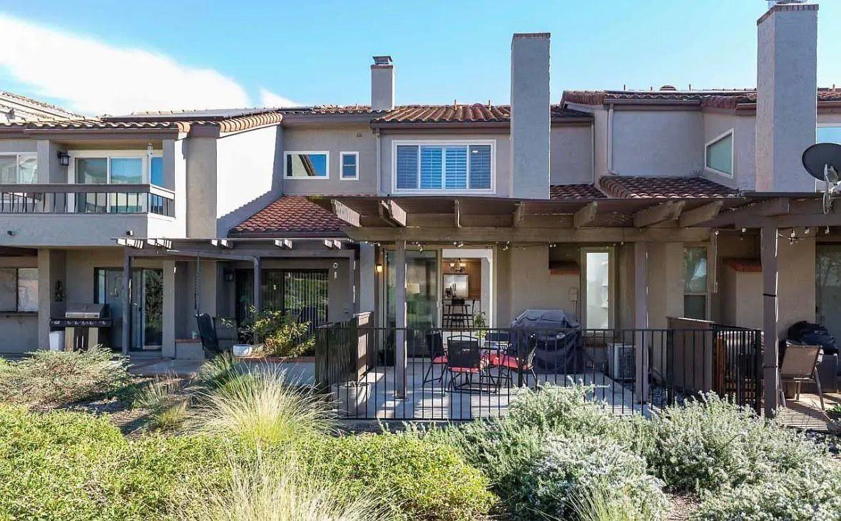 Rarely available residence in Country Club Terrace, an exclusive boutique enclave where fee simple ownership includes the land itself & living feels quietly refined. Live expansively in this sunlit, generously scaled home offering vaulted ceilings, scenic views, serene & manicured grounds, short distance to dog parks & playground. This move-in ready residence offers 2 bedrooms, 2.5 bathrooms & 2-car attached garage. The inviting living room is highlighted by a cozy fireplace, custom built-in entertainment center, mirrored accent wall & large sliding dual pane door that fills the space with natural light. The dining area is ideal for entertaining, complete with new dry bar, butcher block counter, storage cabinetry & wine refrigerator. The updated kitchen with breakfast bar, all new stainless steel appliances & new faucet, white washed cabinetry & excellent storage throughout. A guest powder room & oversized coat closet/pantry complete the main level. Upgrades include dual pane windows with custom wood shutters throughout, three ceiling fans, new electrical panel & new water heater, custom built-ins in every closet, stair railings reconfigured to current code standards & linen closet in upstairs hallway. The expansive primary suite features generous space for home office or nursery, updated en-suite bath, walk-in shower/seat & abundant cabinetry. The second bedroom has its own private bathroom. Amazing outdoor views from your private covered patio with new beautiful concrete flooring & new elegant wrought iron fence with gate. Perfect blend of elegance, comfort & location!!