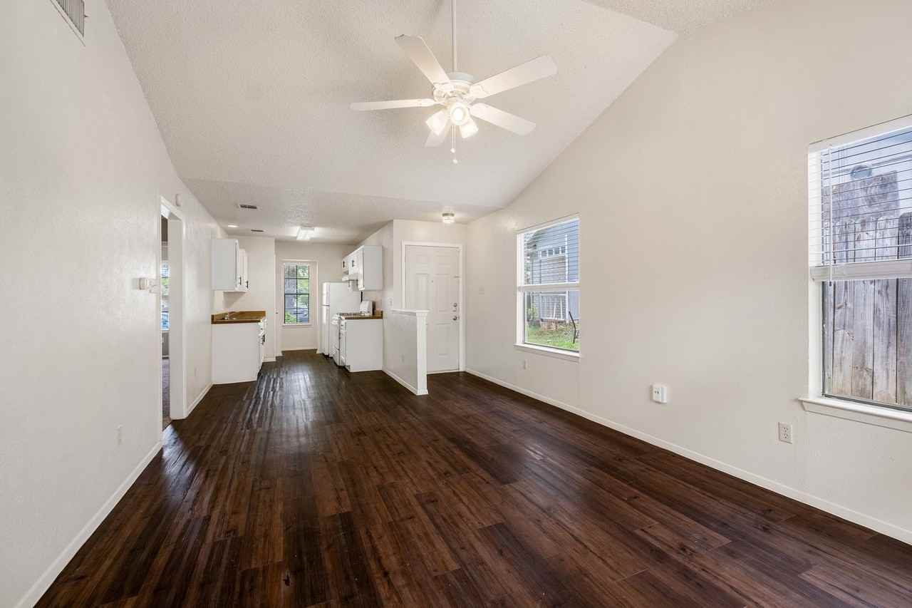 2 Bedroom, 1 Bath Duplex with 1 Car Garage in North Austin Near The Domain, ACC, & North Austin Medical Center ~ Woodgrain Vinyl Floor ~ Rear Entry Garage w/ Alley Access ~ Covered Patio 18 month lease $1350 per month for months 1-9 $1450 per month for months 10-18