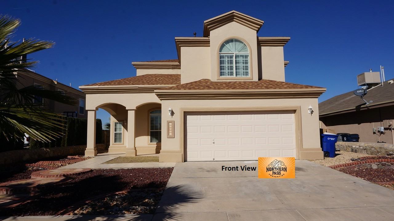 The gorgeous 3-bedroom home is located on the east side of El Paso close to shopping and schools; and allows easy access to Loop 375. Walk into an entry way that is open to the formal living area with vaulted ceilings! Off the entry way you will find an open living space with the dining area and living area. There are tons of windows in that space that allow for great lighting. The living room has beautiful built-ins and a fireplace. There is access to an easy maintenance backyard from the living room. The kitchen comes with all stainless-steel appliances to include a refrigerator, gas stove, and dishwasher. The kitchen also has a cutout into the living room with a breakfast bar top perfect for entertaining. Off the kitchen there is a space that could be used as a den or formal dining room. To finish off the downstairs area there is a guest half bath and laundry room with full size front loading washer and dryer. Upstairs you will find 2 guest bedrooms with great closet space, high ceilings, alcove shelving and ceiling fans; and a full-size guest bath. The master bedroom is a great size space with its own master bathroom and walk-in closet. The master bathroom has a dual vanity, separate water closet and jetted tub. Did we forget to mention this home has Refrigerated A/C & wooden shutters throughout. This home is a gorgeous home priced just right! It won’t last long so call 915-219-9158 to make this home yours! *Se Habla Espanol! **1 Week free on an immediate move in!! Sec Deposit $1295 App Fee $27.50 Apply online at www nppelpaso com or in person at 2208 Montana All pets subject to approval