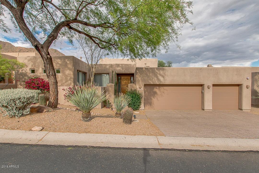 Come see this fabulous 3 bedroom, 2.5 bath property is the beautiful Scottsdale Mountain subdivision. This wonderful home features gorgeous desert landscaping, 3-car garage, private entry courtyard, kitchen with breakfast bar, gas stove, matching black appliances and granite coutertops, as well as a huge family room with soaring ceilings, dramatic fireplace, clerestory windows and skylights. The backyard features amazing mountain views, viewfence, and low maintenance desert landscaping. This community is within the boundaries for the Scottsdale Basis School No. 2 nationally among high schools by U.S. News & World Report. It also features 24/7 manned security guard gate, spa, and tennis courts. The lifestyle you want and deserve awaits you. Schedule your showing before this one sells!