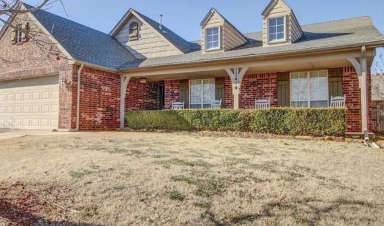 Open floor plan with soaring ceilings, handsome brick fireplace. Spacious kitchen with center island, breakfast bar & eat in area. Large back yard with privacy fence, big patio and front porch. Neighborhood park, pool & ponds. Jenks SCH District. Great location near shopping, dining & close to turnpike for easy commute. Cool off in the Wakefield Community Pool and amenenties for the summer! Text Cristy 918-808-7651 Single Family 1 Story Brick House