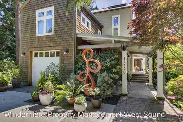 Beautiful Island Home - Gorgeous unique Bainbridge Island 4 bedroom, 3.5 bath home. Just the right blend of country elegance and casual NW modern. Thoughtful design and practical layout with every room open to a view of the surrounding property, plenty of practical built-in storage, and lots of additional living areas; office spaces, media room, butler’s pantry and several decks for outdoor living. Gourmet kitchen overlooks great room with large fireplace and high ceiling with open beams and skylights to bring in lots of natural light. Perfect space for entertaining large or intimate gatherings. Mudroom and laundry room, Hot tub, attached 1-car garage. Solar Shed reduces electric bill. Quiet 2.5 acres with large ornamental pond. Great proximity to Rolling Bay, Fay Bainbridge, Wilkes, just a few easy miles to the Seattle ferry. Landscaping included. Tenant pays propane, electric, garbage/recycling and water will be billed at a flat $45 per month. Marta Morris 206.498.4716 ****