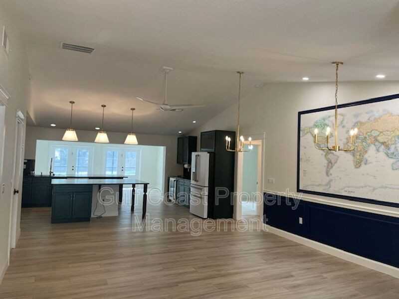 Welcome to this beautifully renovated 3 bedroom, 2 bathroom house located in the beautiful Venice, FL. This home has been exquisitely remodelled, not a detailed missed or an expense spared. With a modern farmhouse flair, this home boasts a large and very functional kitchen with a gas cooktop with a hood, large center island, wet bar and beautiful appliances. The primary suite is spacious and has a fantastic ensuite which also cleverly combines the closet and laundry room. The 2 spare bedrooms share a bath with a large walk- in shower. The outdoor space is incredible. The private saltwater pool is perfect for relaxing and enjoying the Florida sunshine. It is a rectangular lap pool and can be heated. The screened in lanai has a covered area which is perfect for a dining table or outdoor seating. This home is situated on a cul-de-sac which is great not only for privacy but also safety. There is a fenced area in the yard and allows for your furry friends to roam freely. Don't miss out on the opportunity to make this house your new oasis in Venice. Pet Friendly! Lawn and Pool Service Included in the Rent. In addition to the rent, a $35 monthly resident benefit fee will be applied. Amenities: private saltwater pool, fenced yard, pet friendly
