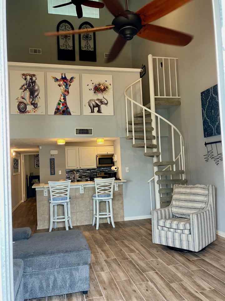 Beautiful fully furnished 2 bedroom 2 bath condo with an additional upstairs flex space that was being used as a 3rd bedroom. This immaculate 2nd floor unit offers a peaceful view of the pool and scenic greenbelt, complete with a rock-lined stream and waterfall flowing into Lake Conroe. Grills and the pool are right outside. Fully updated and move-in ready, this turn-key home features a private, shaded balcony where you can relax to the sound of a babbling brook. The unit offers a private stairwell leading straight to the front door! Located in the desirable Walden community, residents enjoy extensive amenities including hike and bike trails, a racquet club, a fitness center, 16 tennis courts (4 covered, 12 outdoor), pickleball courts, and an Olympicsized lap pool. There are also two boat ramps and the Yacht Club with lakefront dining and a large outdoor pool. HOA fees cover water, sewer, trash, common area maintenance, pool service, and access to all Walden amenities