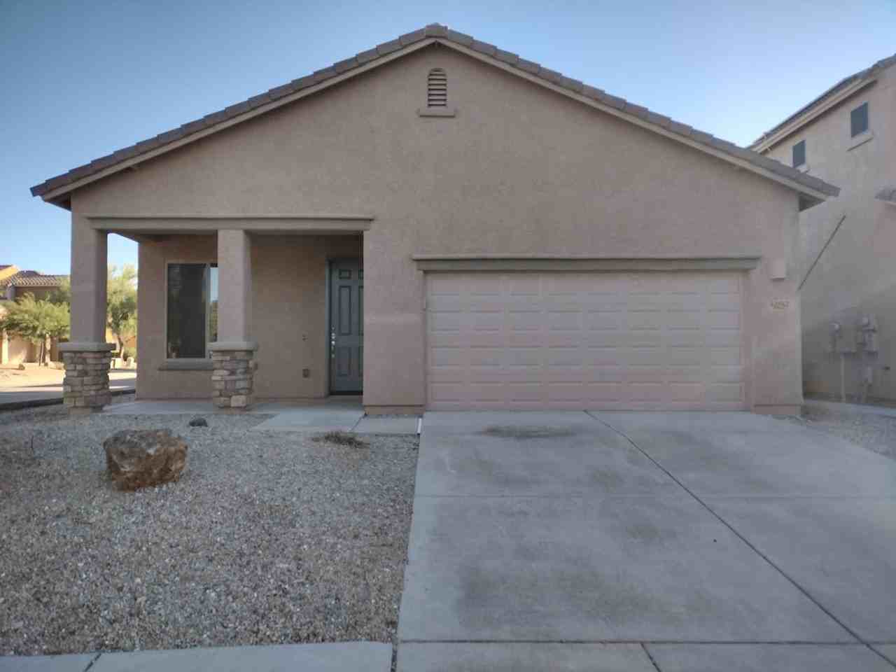 This contemporary 3 Bd, 2 Ba, 1,620 sq. ft. home in Vail comes with spacious living room plus family room, kitchen with new stainless-steel appliances, breakfast bar, updated LED fixtures and ceiling fans, fresh paint, new luxury vinyl plank flooring throughout, and new 9-ft tall blackout energy friendly curtains. Master bedroom suite has dual-sink vanity and garden tub. Also includes optional alarm system, 2-car garage, large walled yard with covered patio on a corner lot, air conditioning, laundry room with storage cabinets and W/D H/U. $1,800/mo., $1,800 sec. dep. Pets with approval and additional pet deposit. Houghton/Mary Ann Cleveland Way - East, R-Red Iron Trail, L-Miramar Canyon Pass, R-Red Canyon Place.
